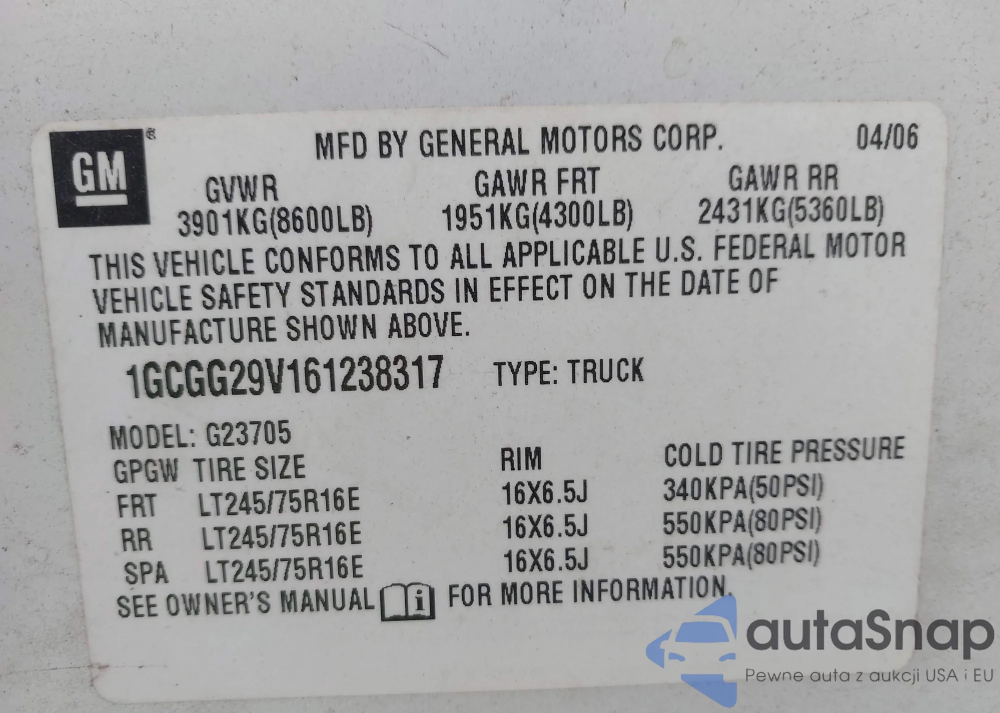 VIN: 1GCGG29V161238317