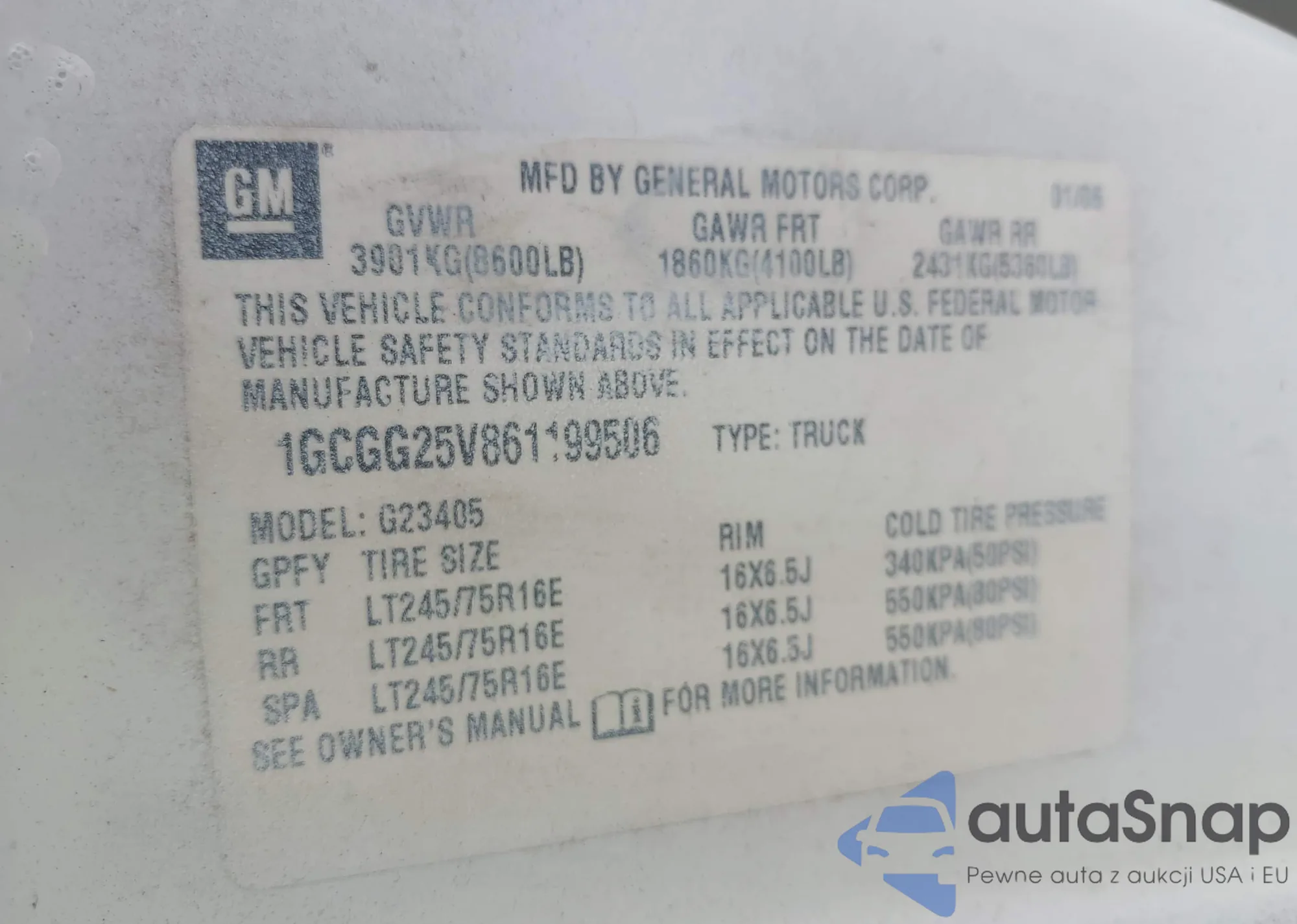 • VIN: 1GCGG25V861199506