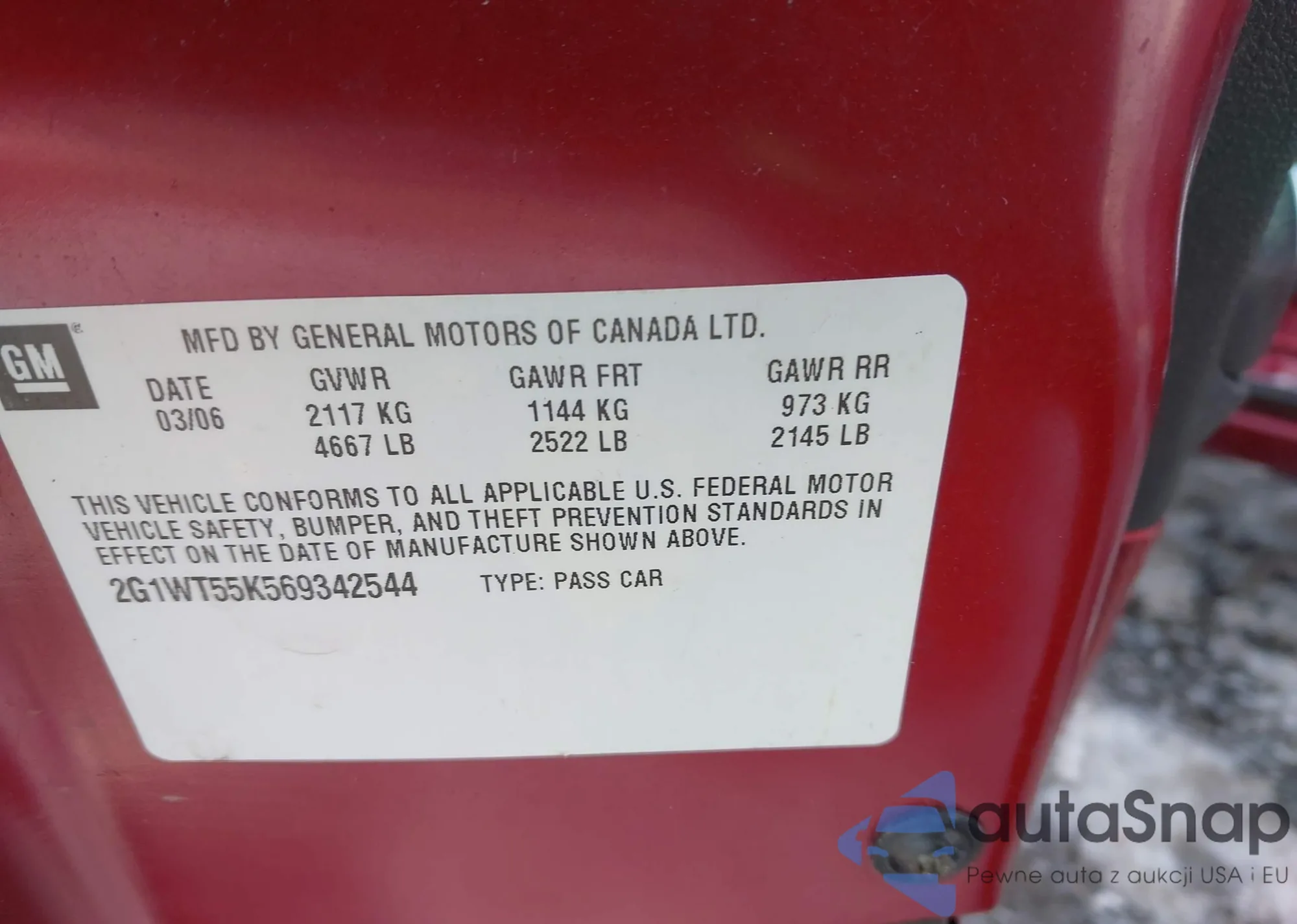 VIN: 2G1WT55K569342544