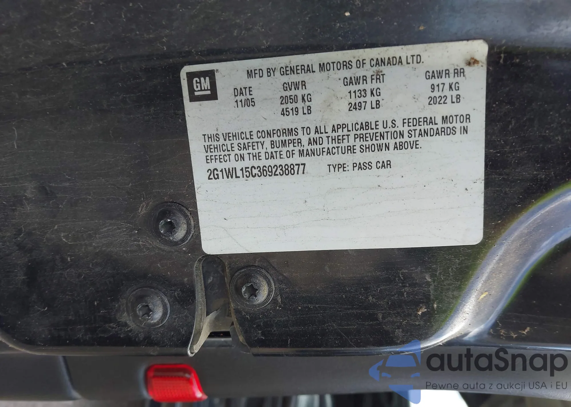 VIN: 2G1WL15C369238877