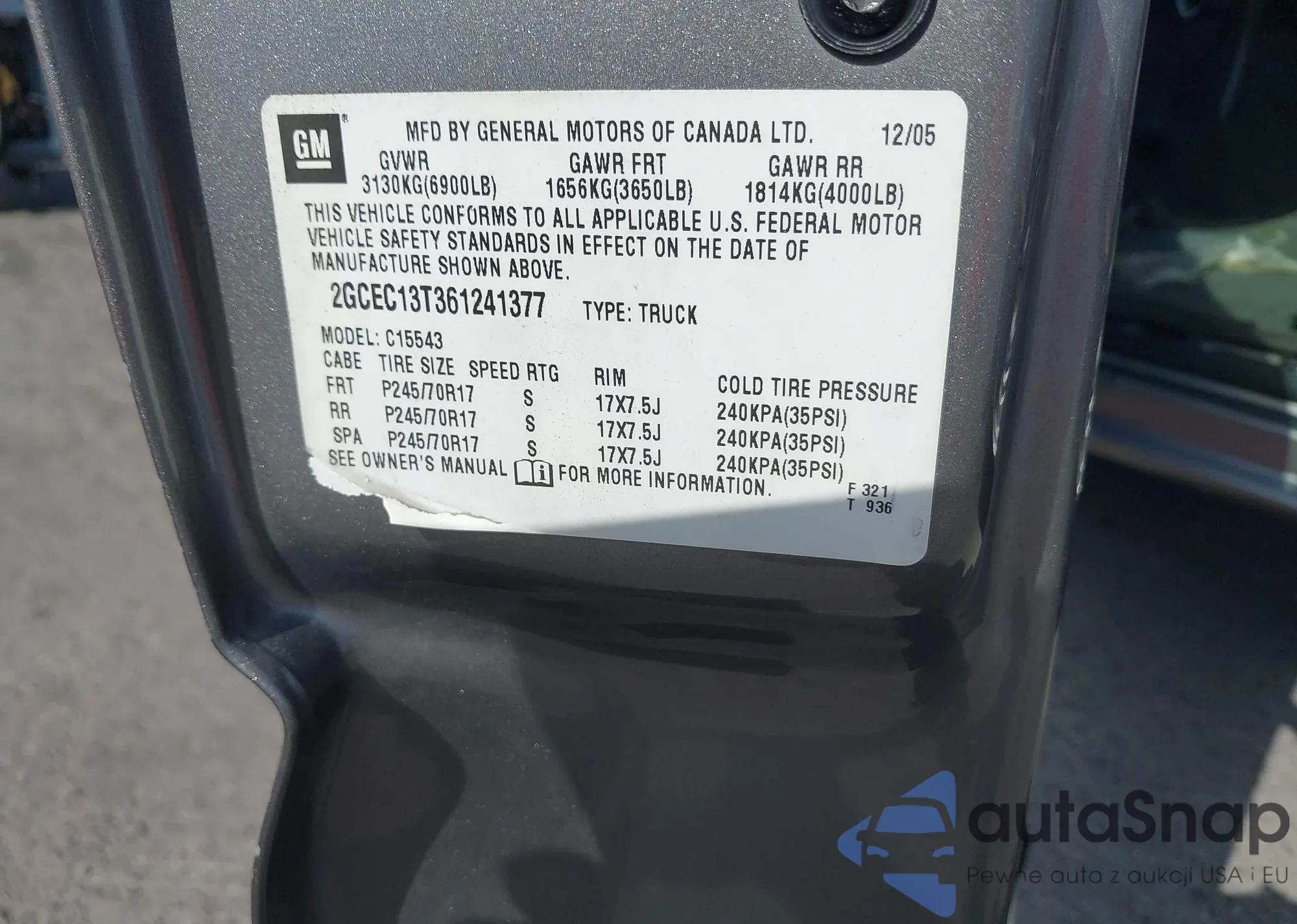 VIN: 2GCEC13T361241377
