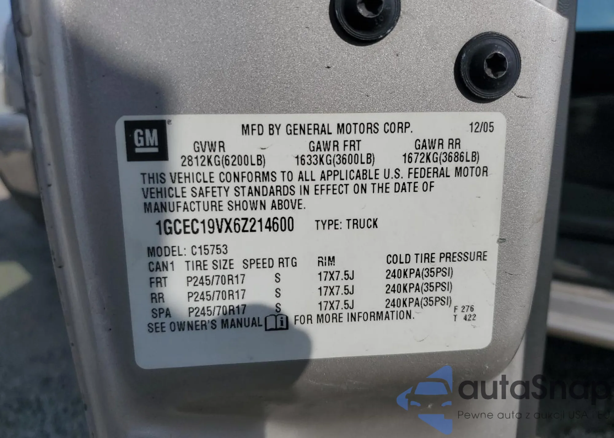 VIN: 1GCEC19VX6Z214600