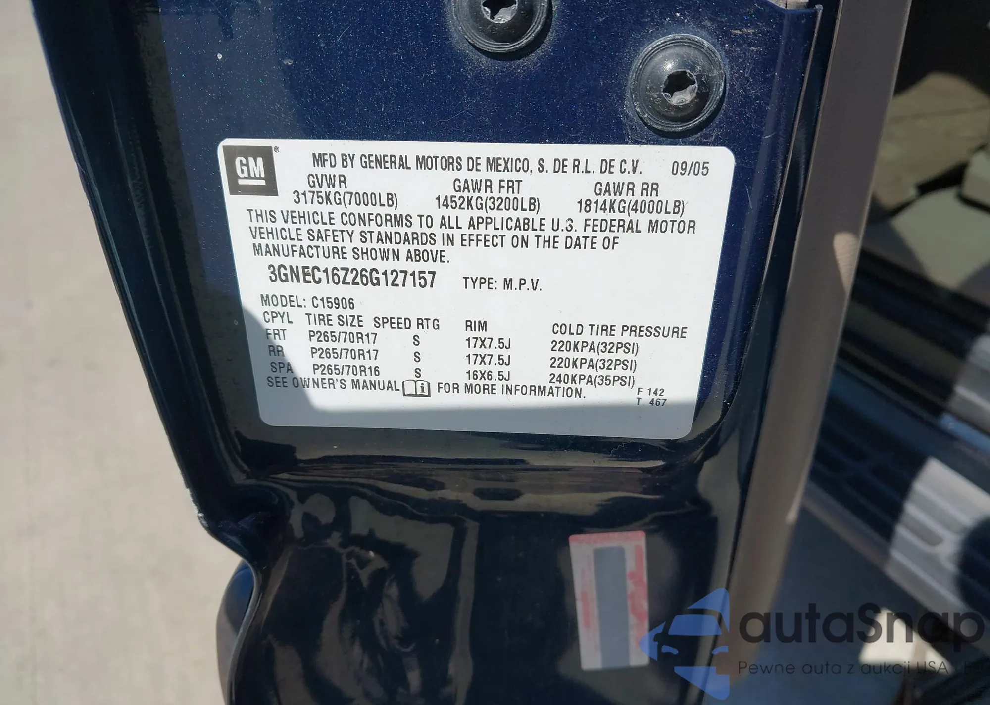 VIN: 3GNEC16Z26G127157