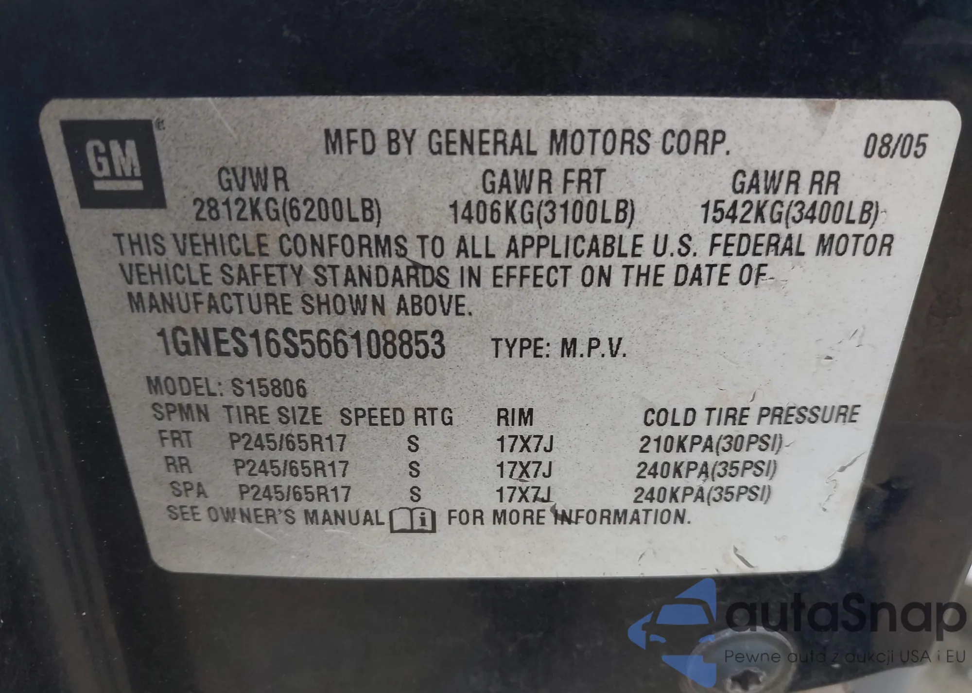 VIN: 1GNES16S566108853