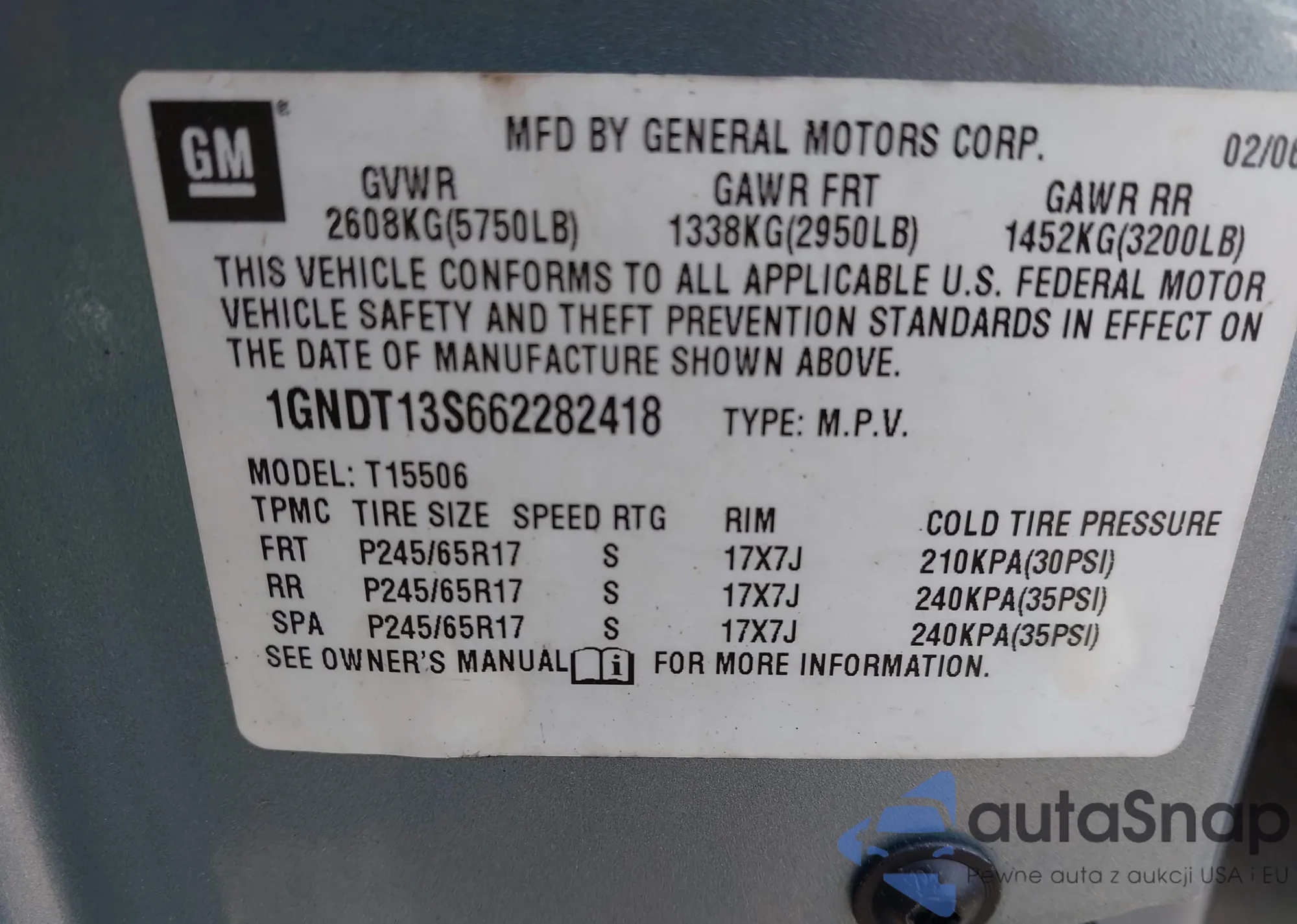 VIN: 1GNDT13S662282418
