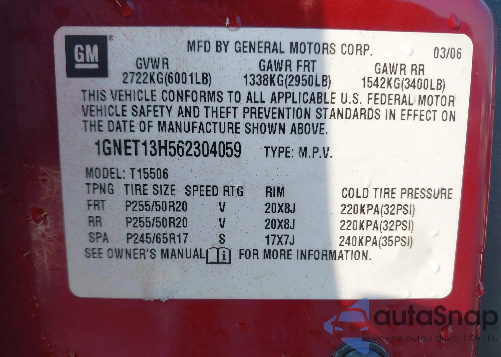 • VIN: 1GNET13H562304059