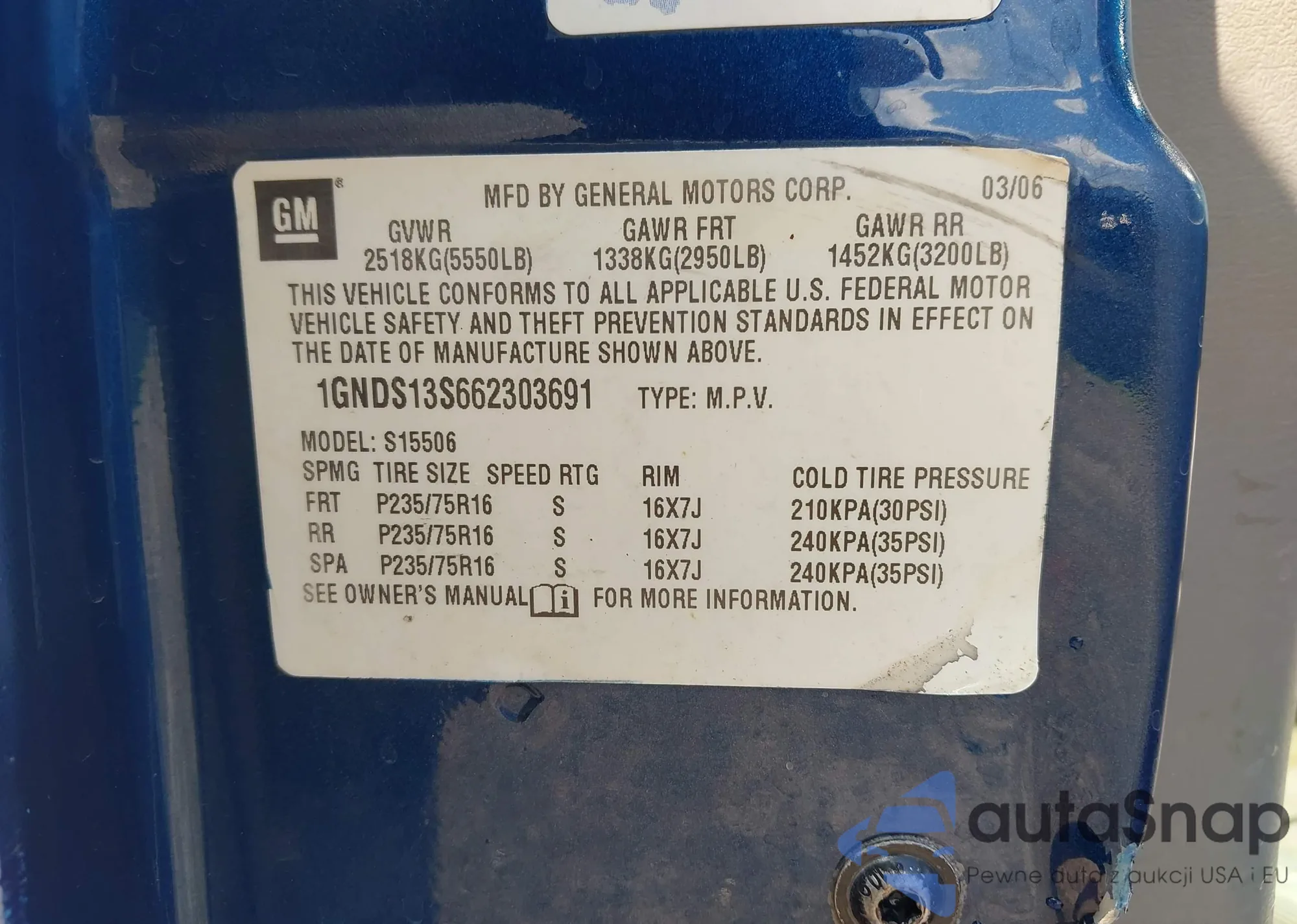 VIN: 1GNDS13S662303691