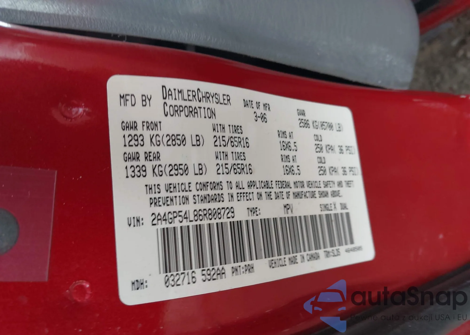 Автомобиль Chrysler Town & Country 2006 (VIN 2A4GP54L86R808729) ранее не участвовал в торгах. Документы чистые, пробег соответствует или ниже среднего по рынку. Продаётся страховой компанией — рекомендуем покупку. Доставка в порт займет около 6–8 недель.