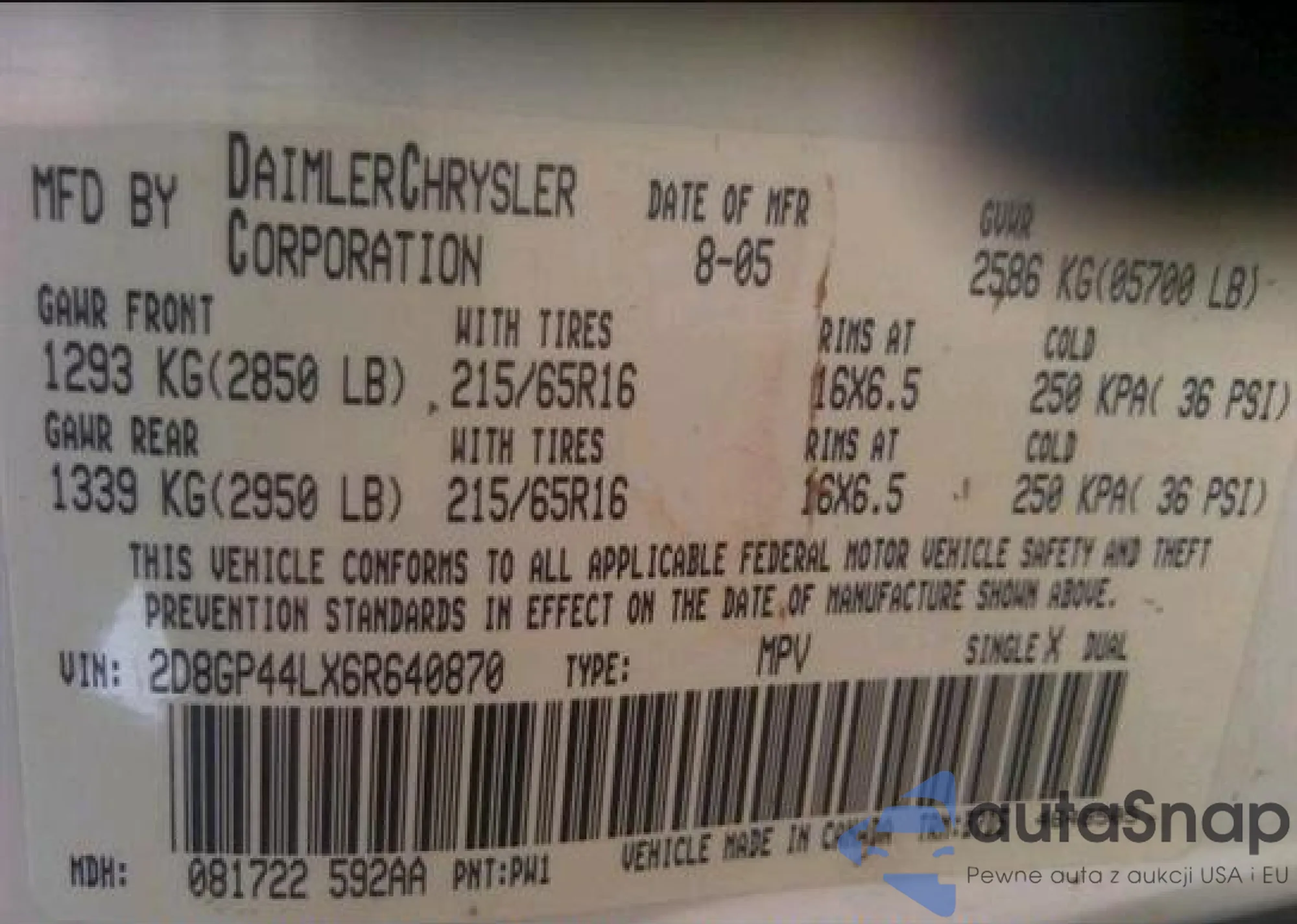 • VIN: 2D8GP44LX6R640870
