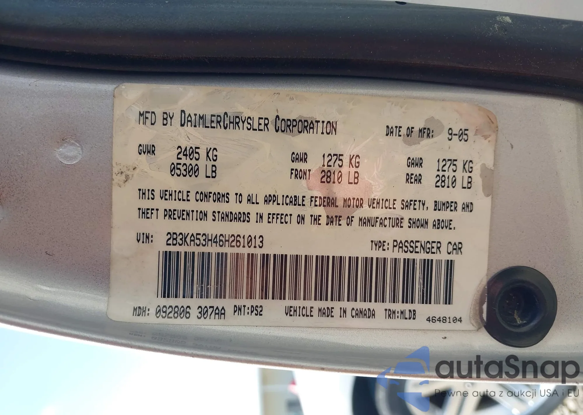 VIN: 2B3KA53H46H261013