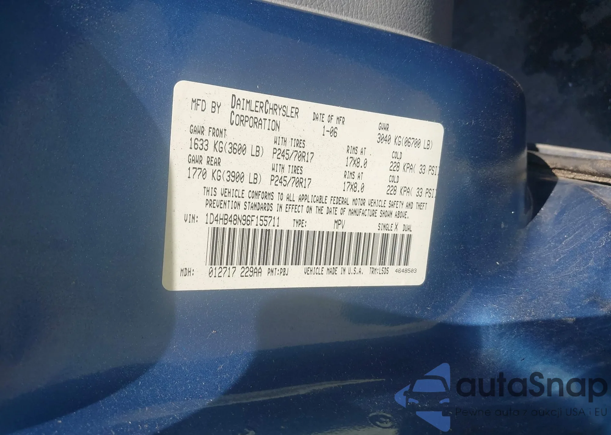 VIN: 1D4HB48N96F155711