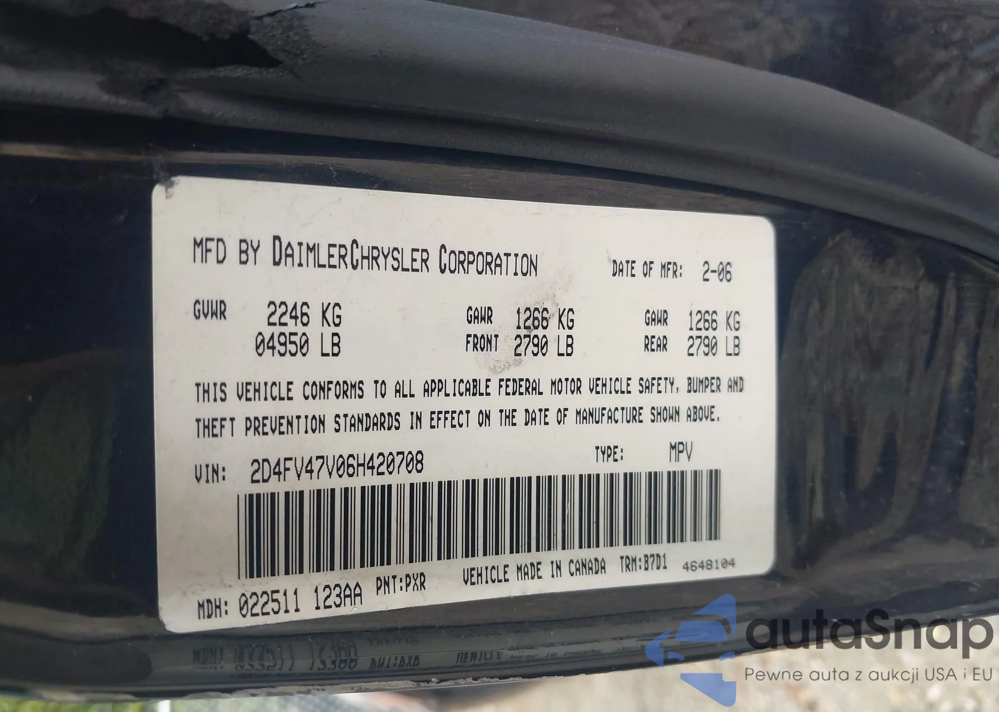 VIN: 2D4FV47V06H420708