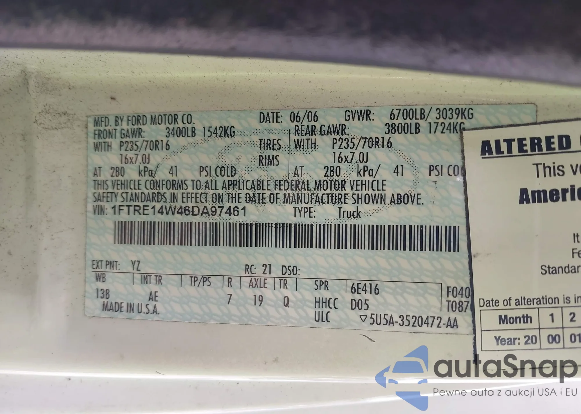 VIN: 1FTRE14W46DA97461
