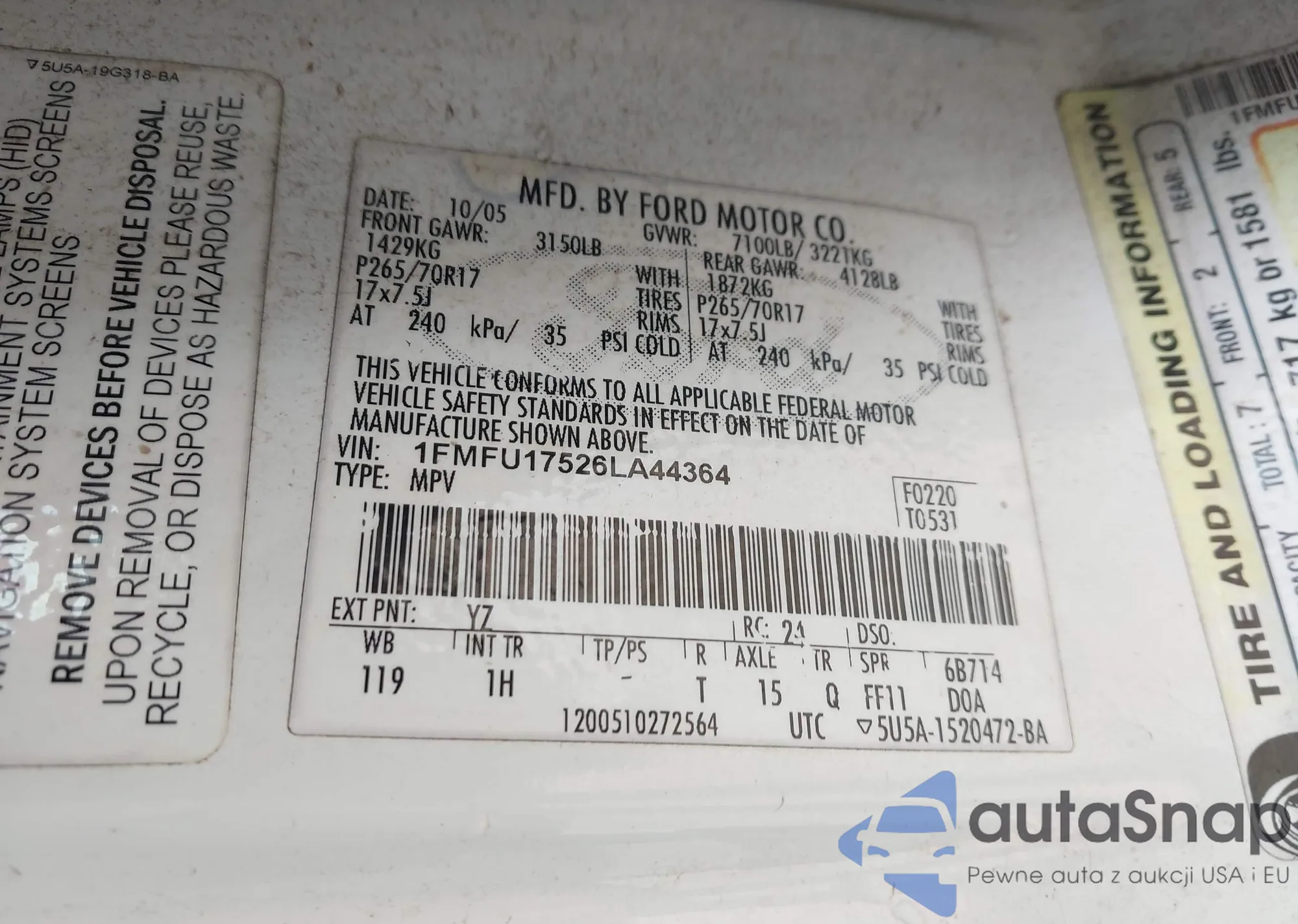 • VIN: 1FMFU17526LA44364