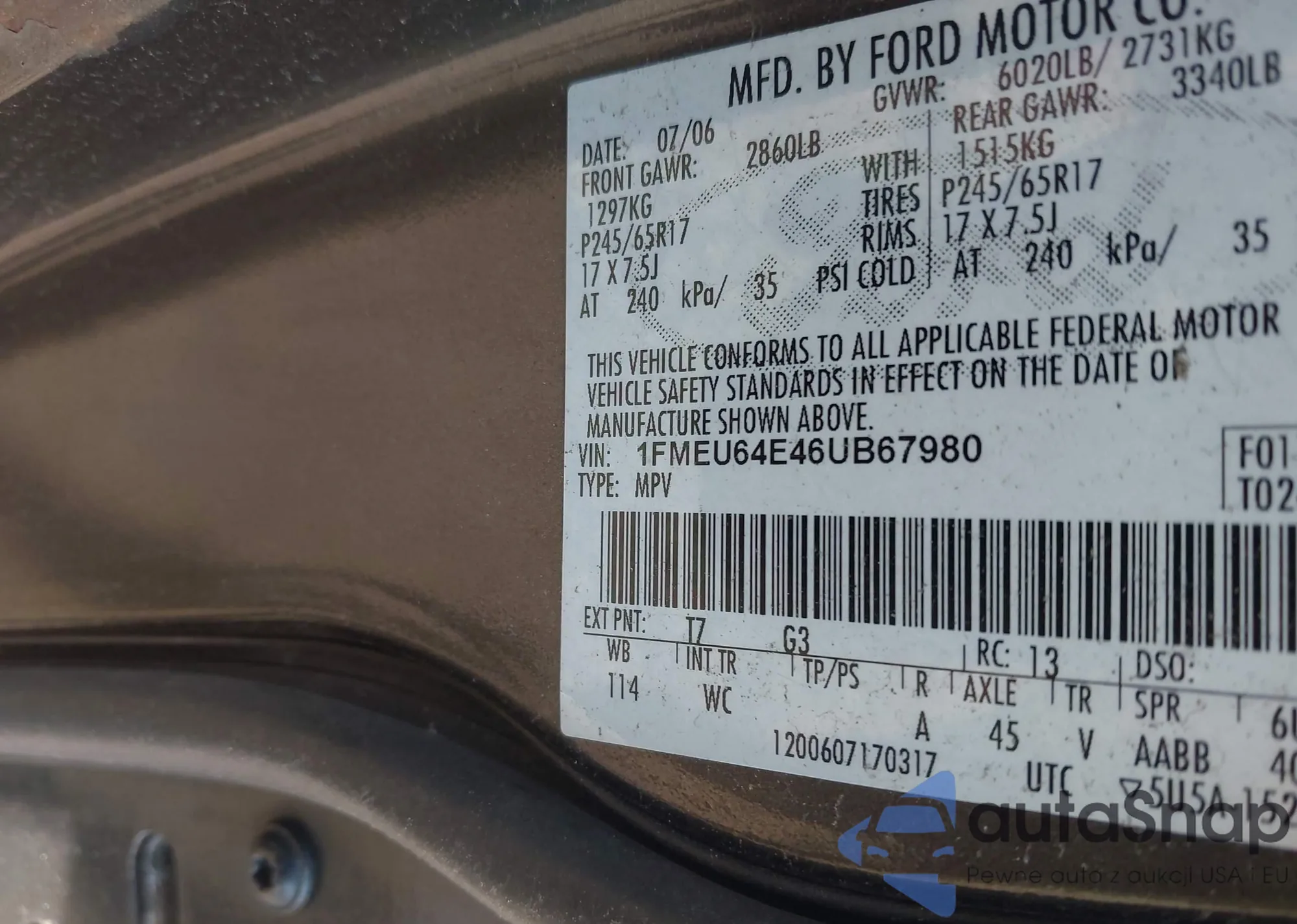 VIN: 1FMEU64E46UB67980