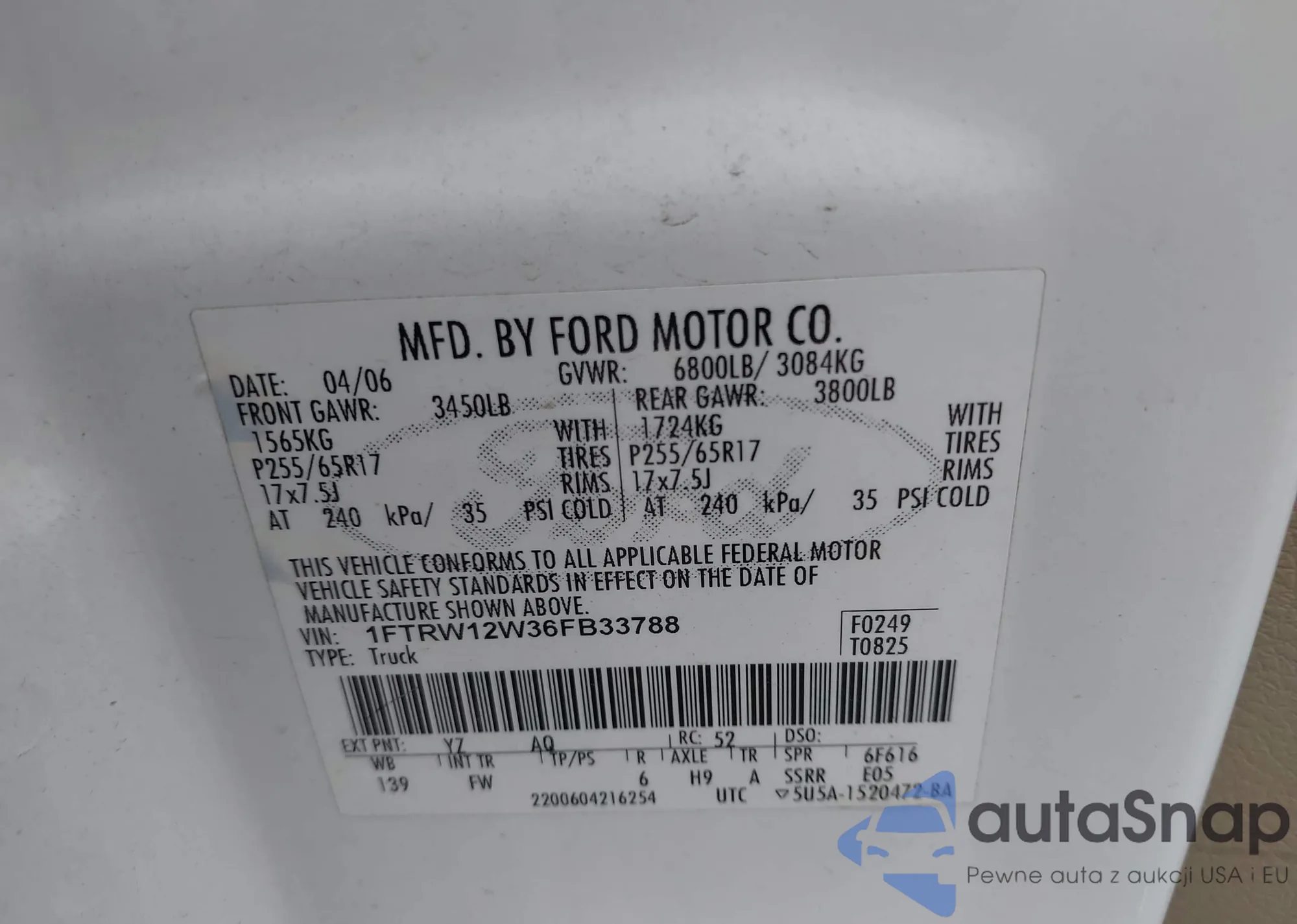 VIN: 1FTRW12W36FB33788