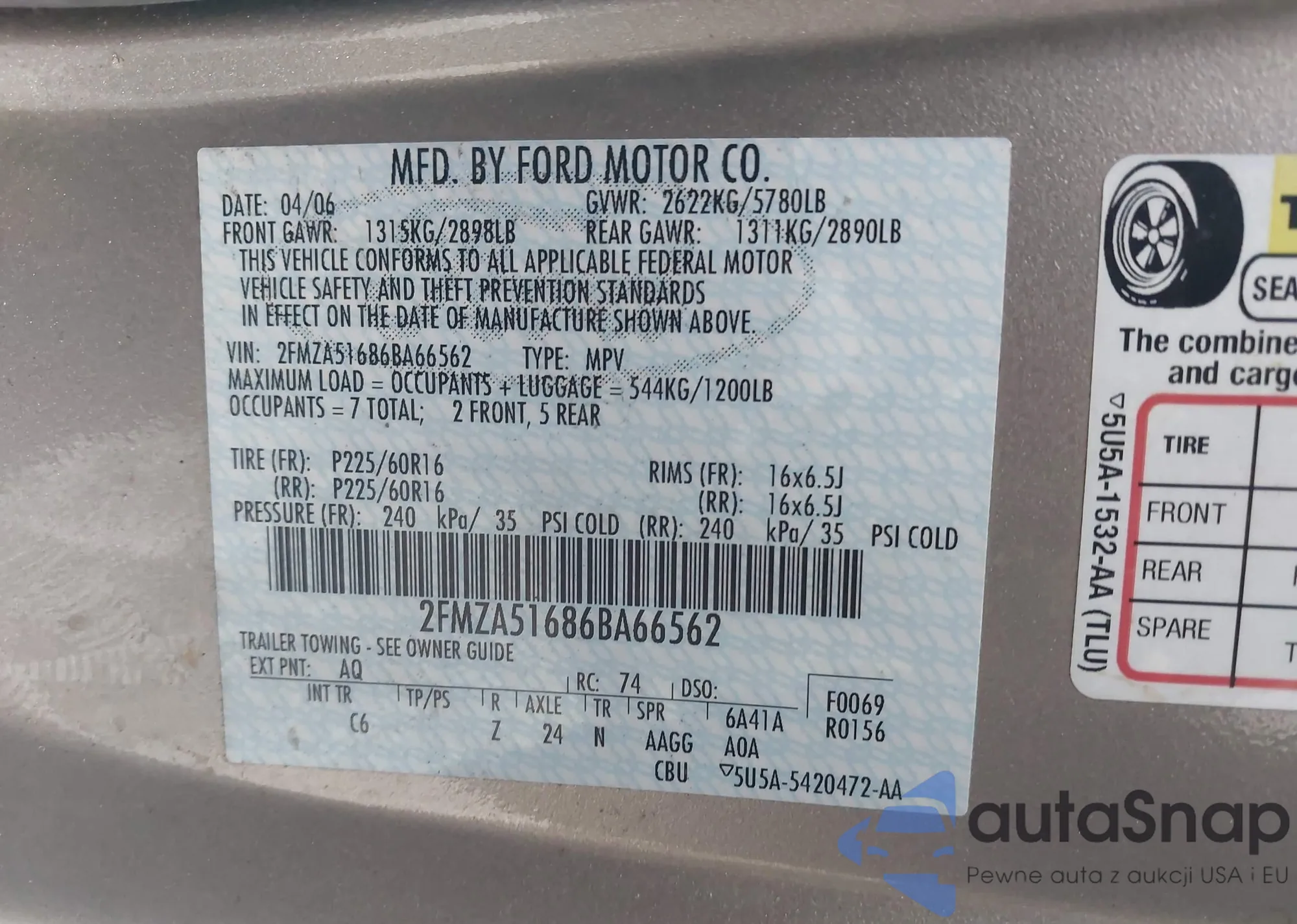 VIN: 2FMZA51686BA66562