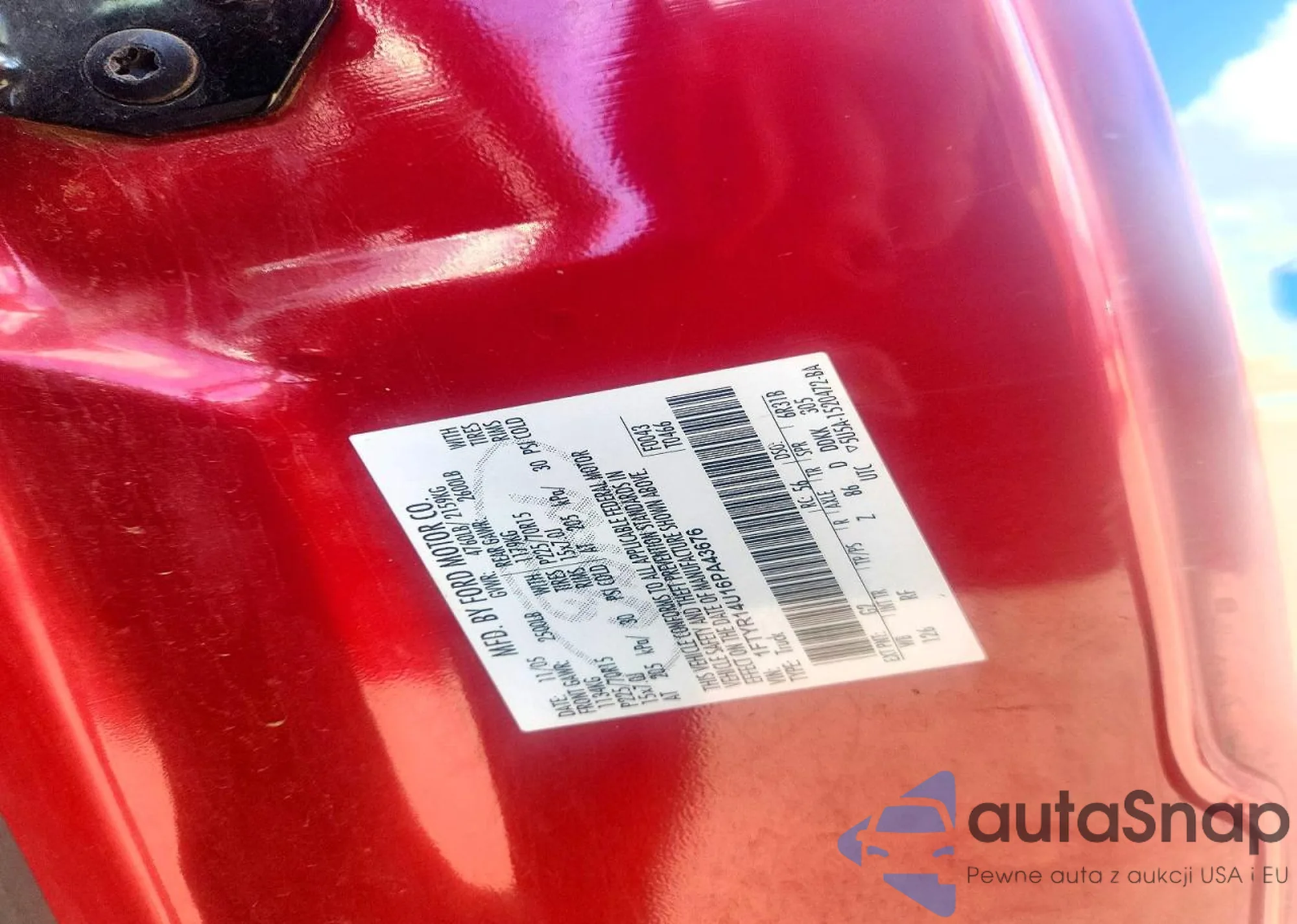 Автомобиль Ford Ranger 2006 (VIN 1FTYR14U16PA43676) ранее не участвовал в торгах. Документы чистые, пробег соответствует или ниже среднего по рынку. Продаётся страховой компанией — рекомендуем покупку. Доставка в порт займет около 6–8 недель.