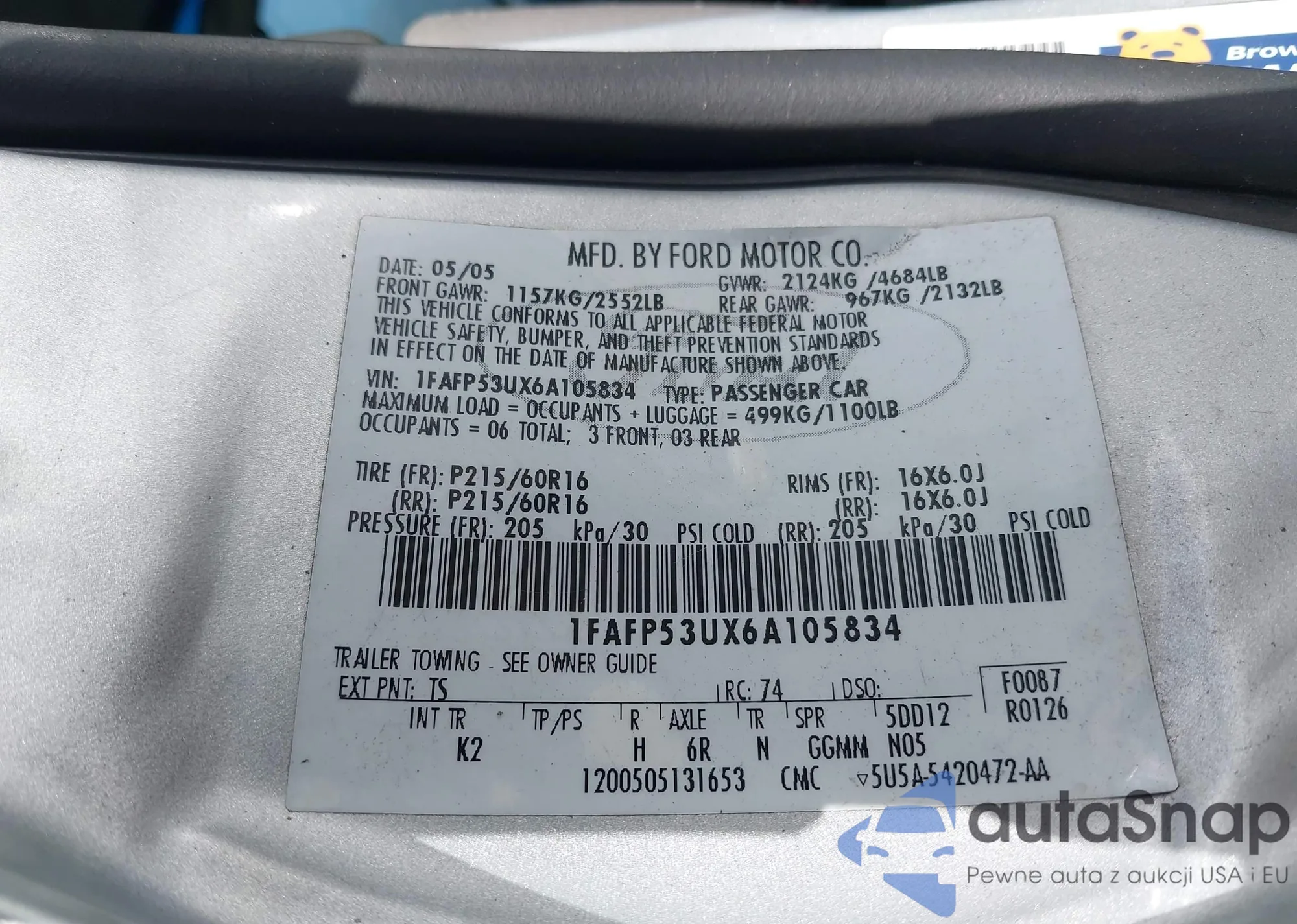 VIN: 1FAFP53UX6A105834