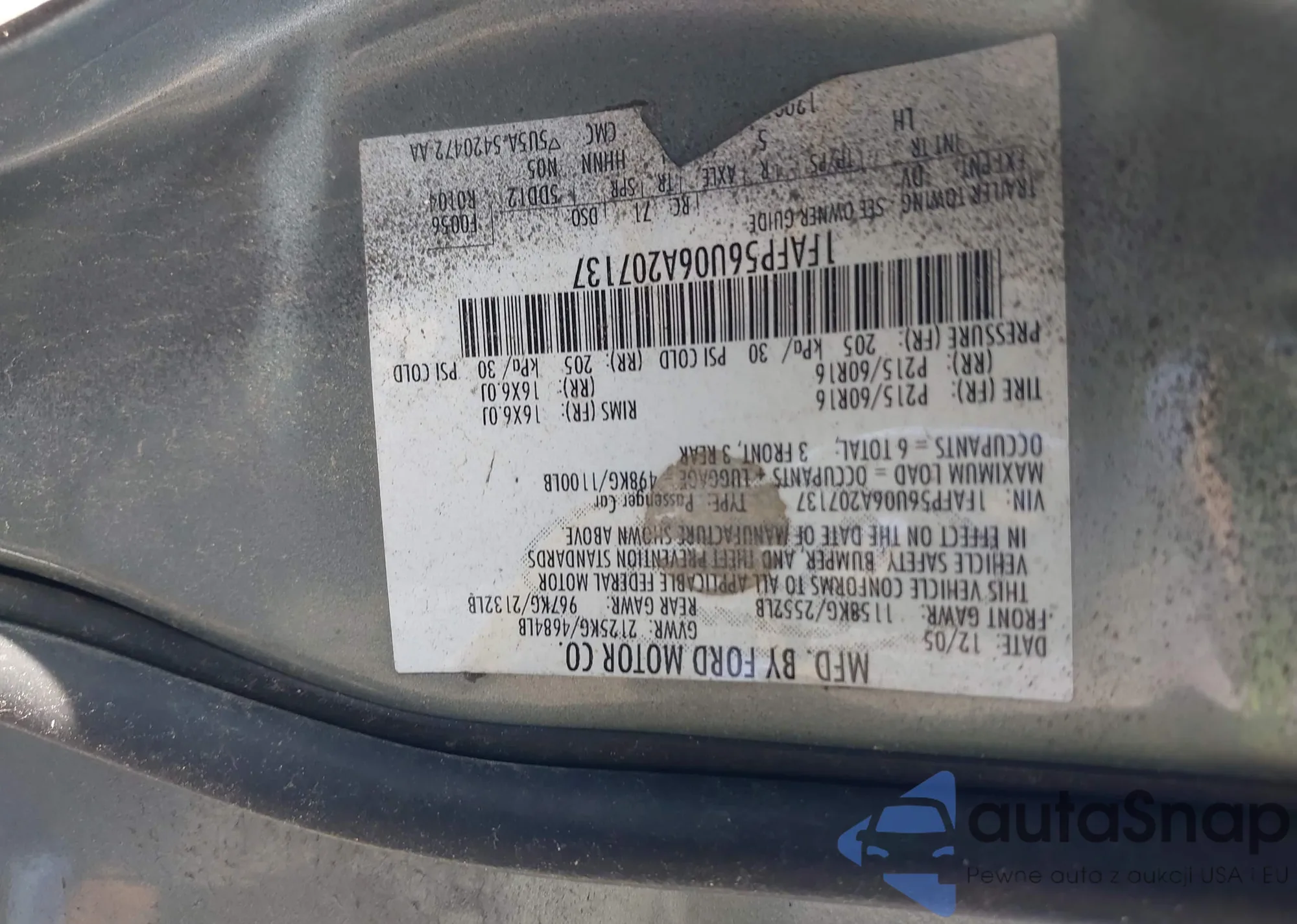 VIN: 1FAFP56U06A207137