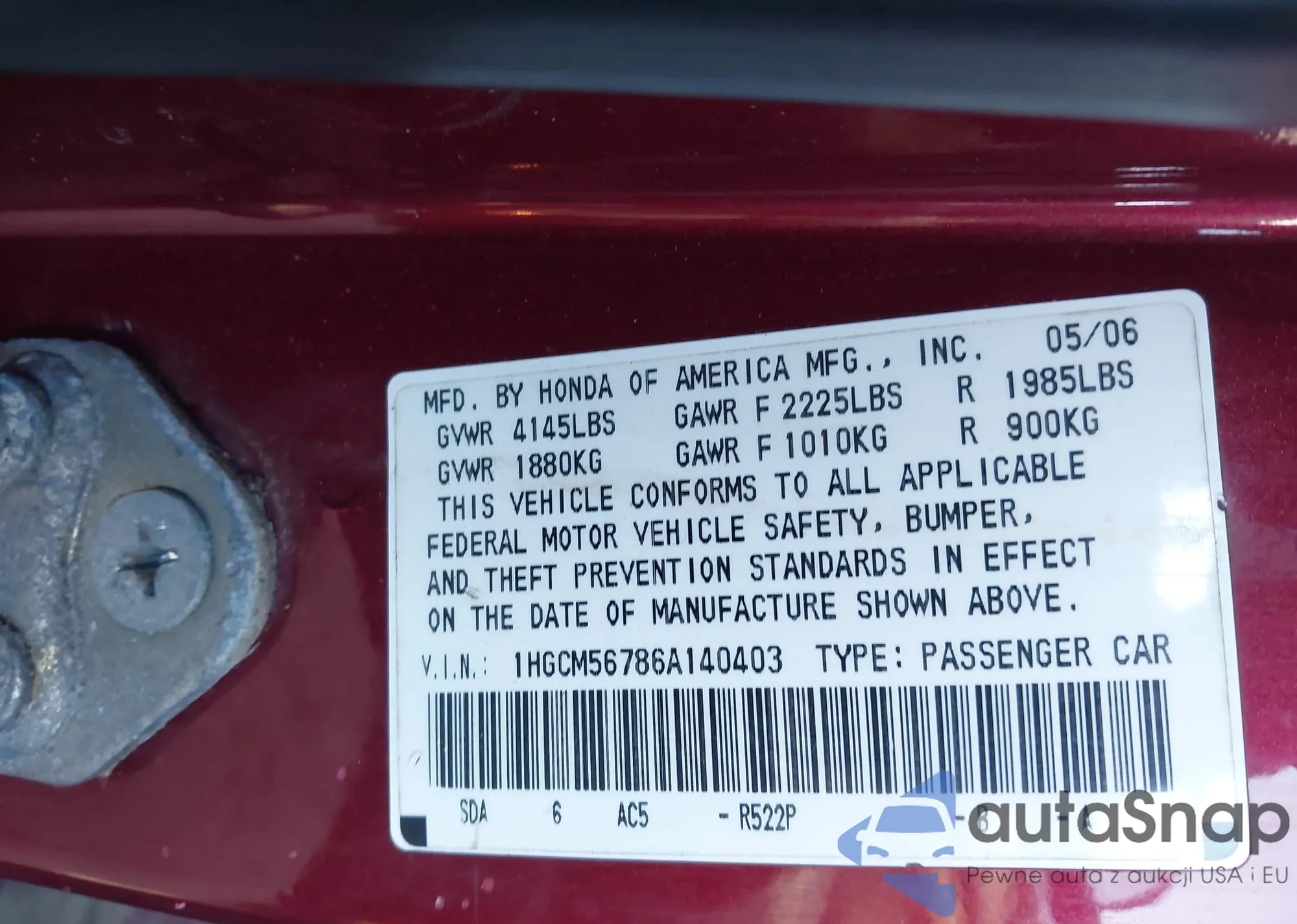 VIN: 1HGCM56786A140403