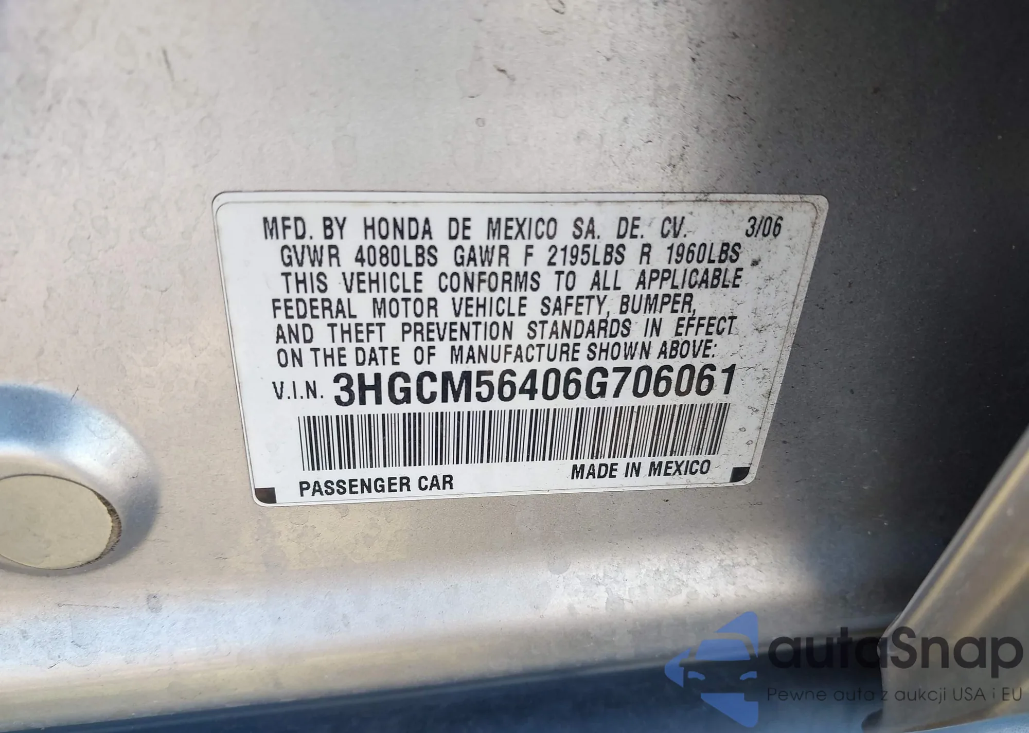 VIN: 3HGCM56406G706061
