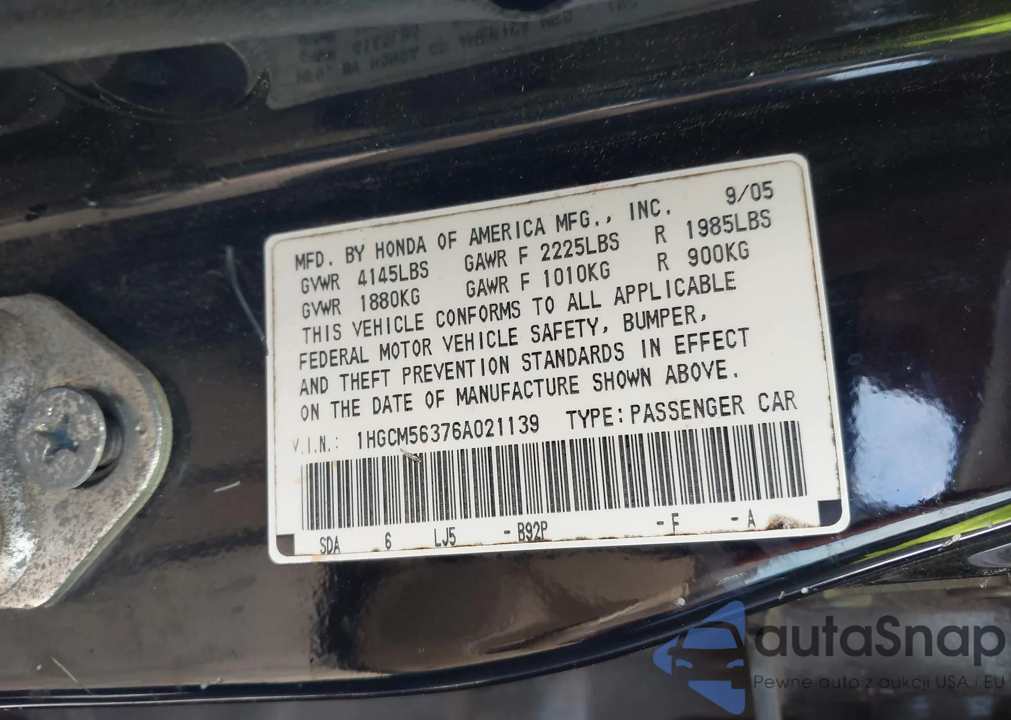VIN: 1HGCM56376A021139
