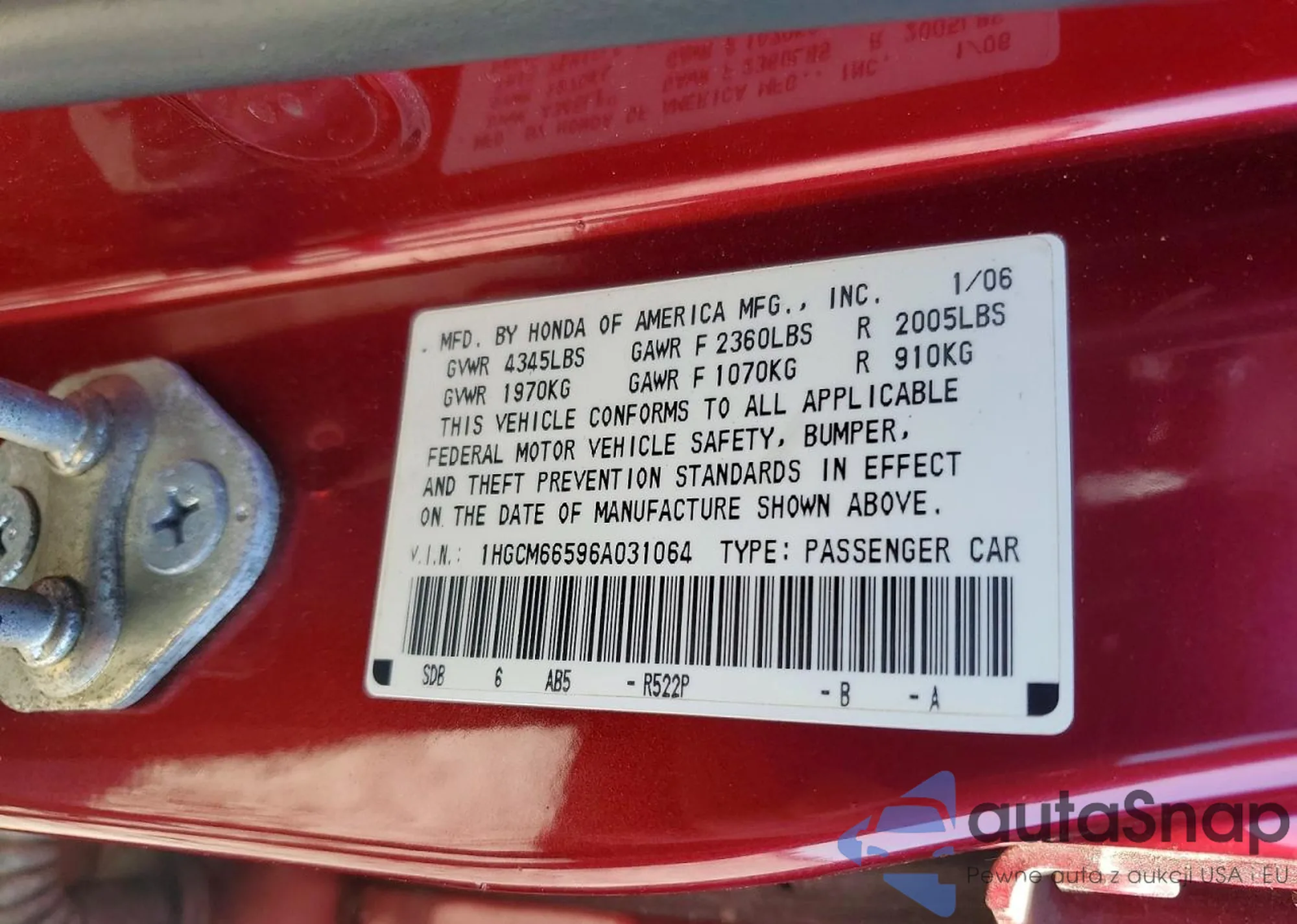 VIN: 1HGCM66596A031064