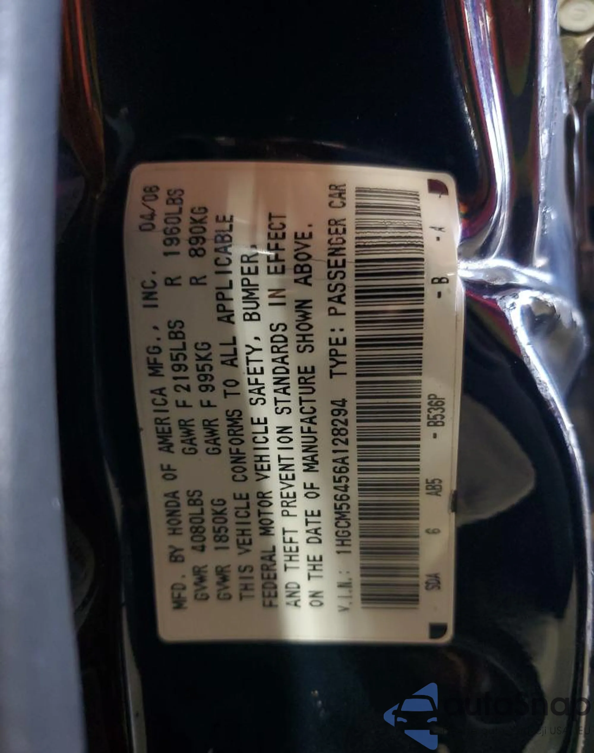 VIN: 1HGCM56456A128294