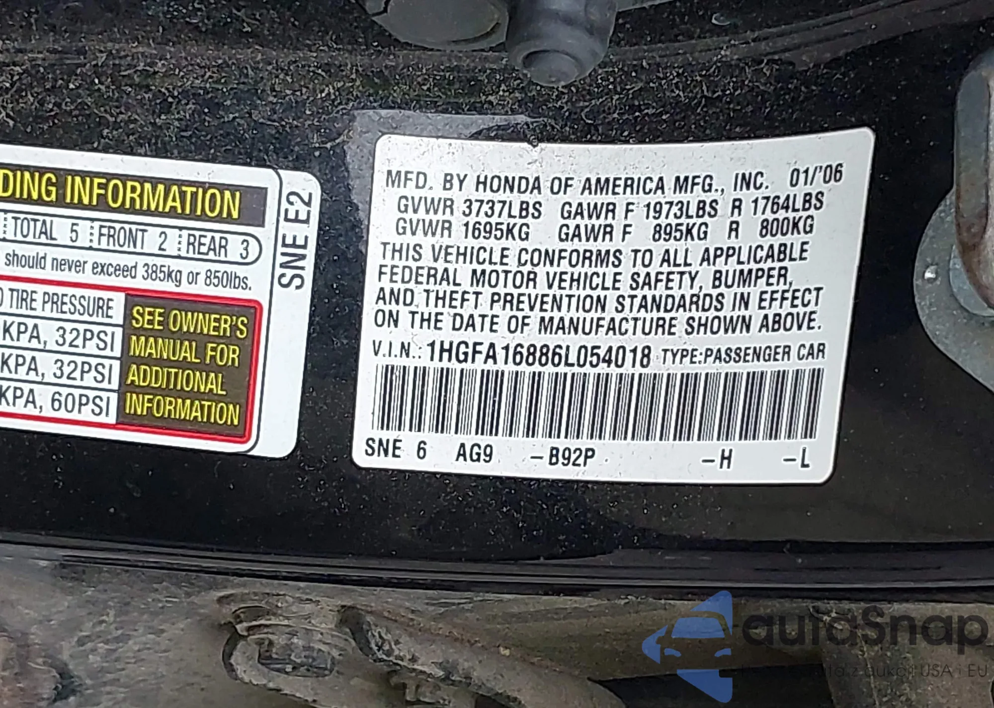 Автомобиль Honda Civic 2006 (VIN 1HGFA16886L054018) имеет документы, препятствующие регистрации. Могут возникнуть сложности при экспорте и регистрации. Обратитесь к экспертам AutaSnap для поиска альтернатив.