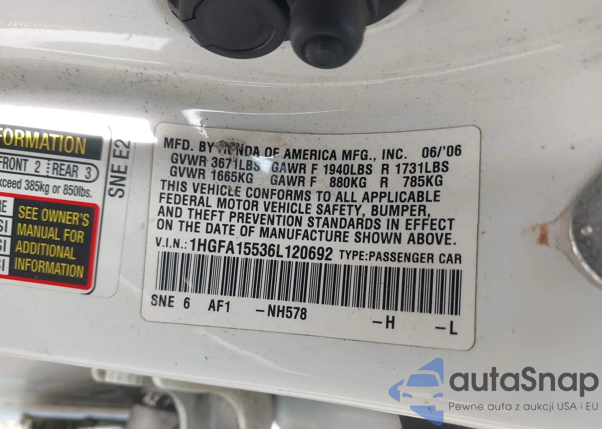 VIN: 1HGFA15536L120692