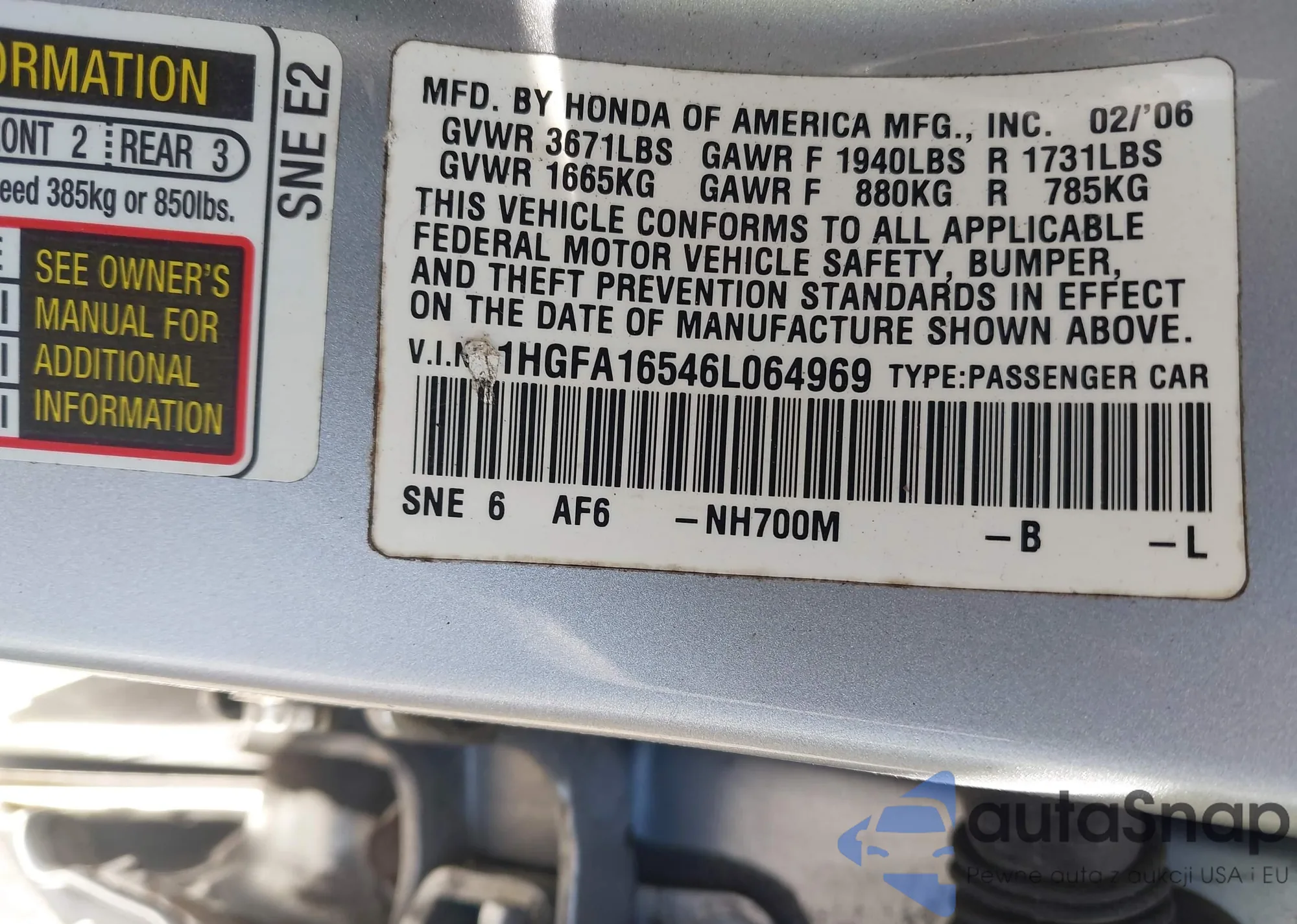 VIN: 1HGFA16546L064969