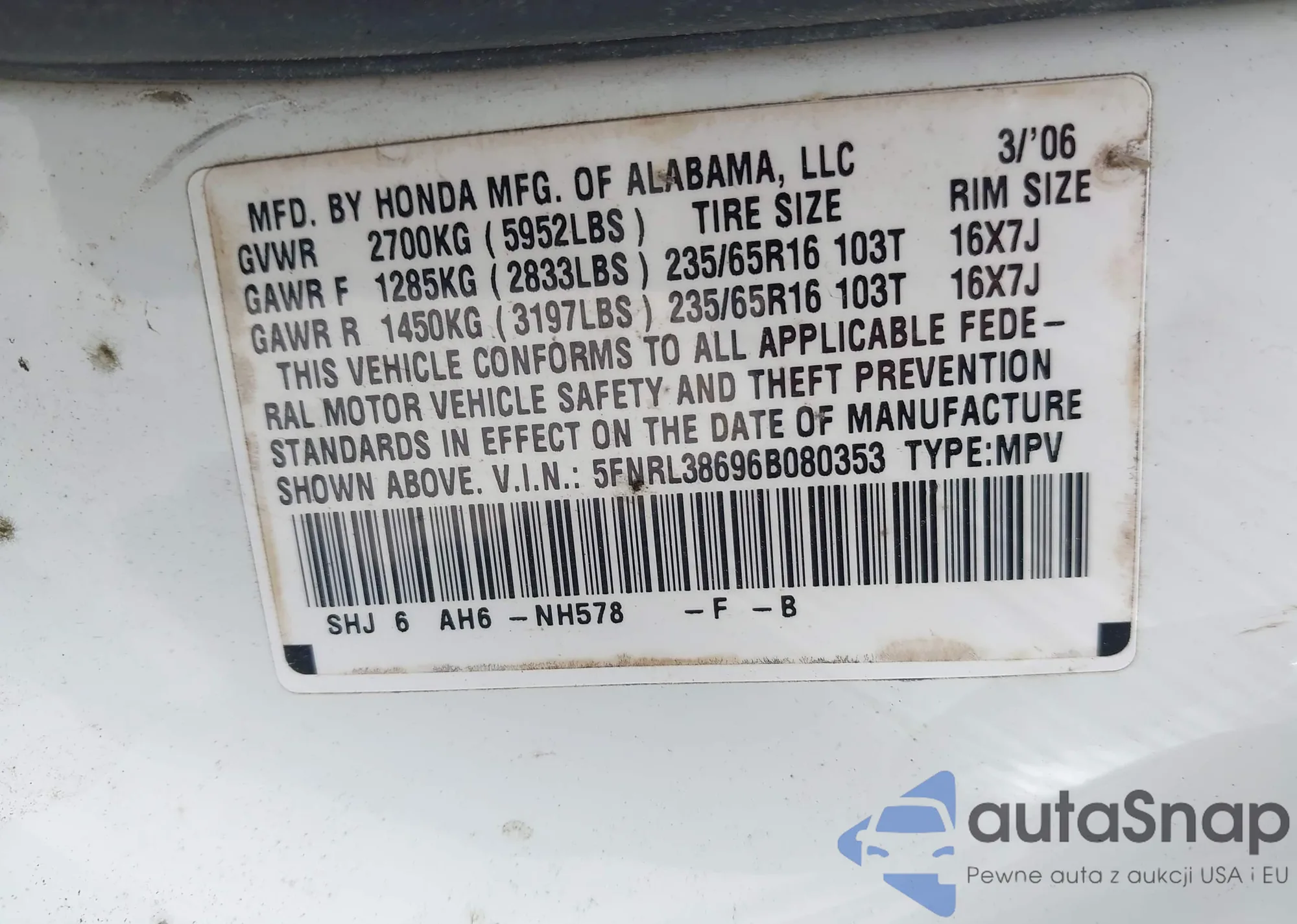 VIN: 5FNRL38696B080353