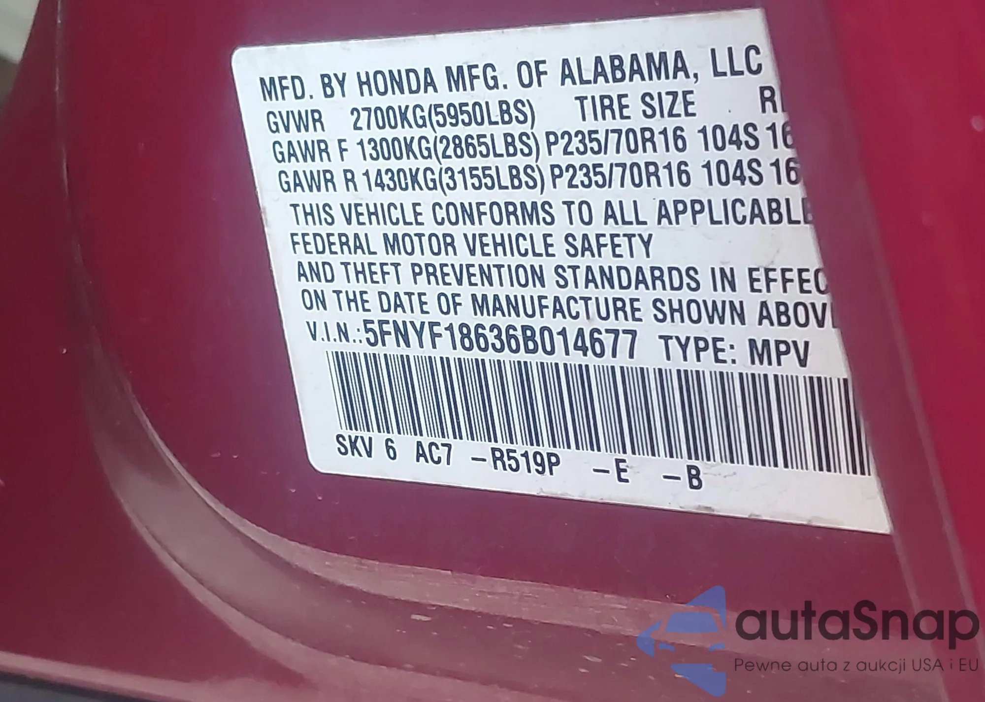 Автомобиль Honda Pilot 2006 (VIN 5FNYF18636B014677) ранее не участвовал в торгах. Документы чистые, пробег соответствует или ниже среднего по рынку. Продаётся страховой компанией — рекомендуем покупку. Доставка в порт займет около 6–8 недель.
