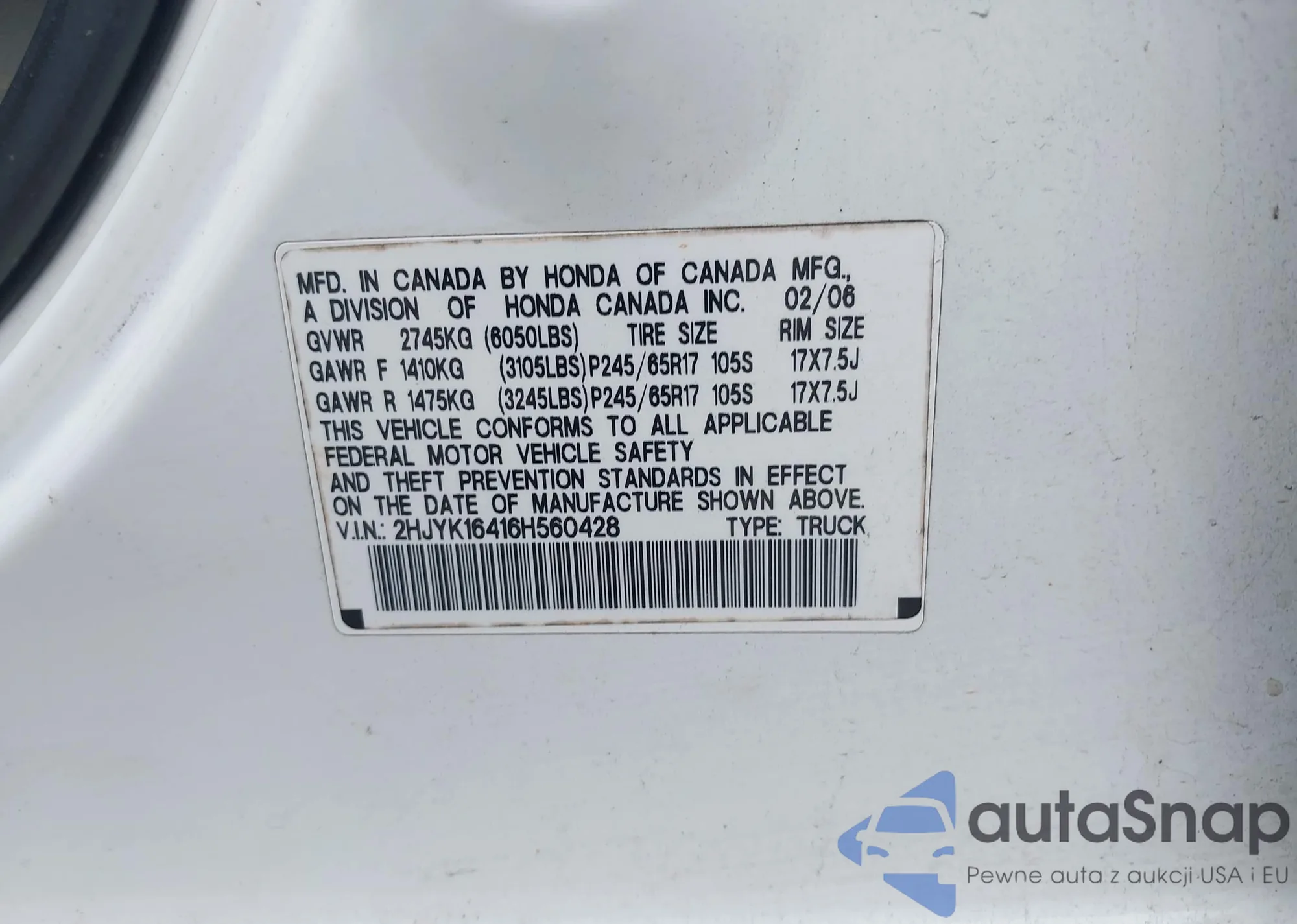 VIN: 2HJYK16416H560428