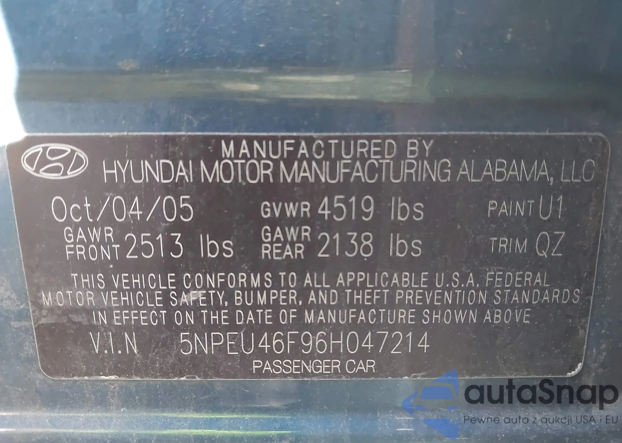 VIN: 5NPEU46F96H047214