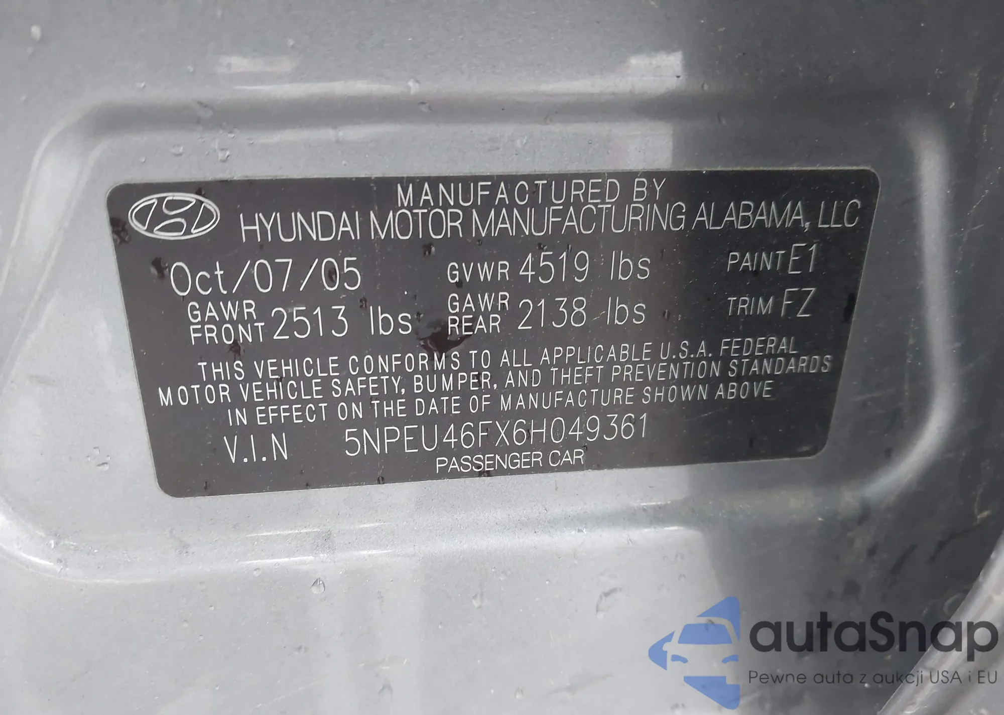 VIN: 5NPEU46FX6H049361