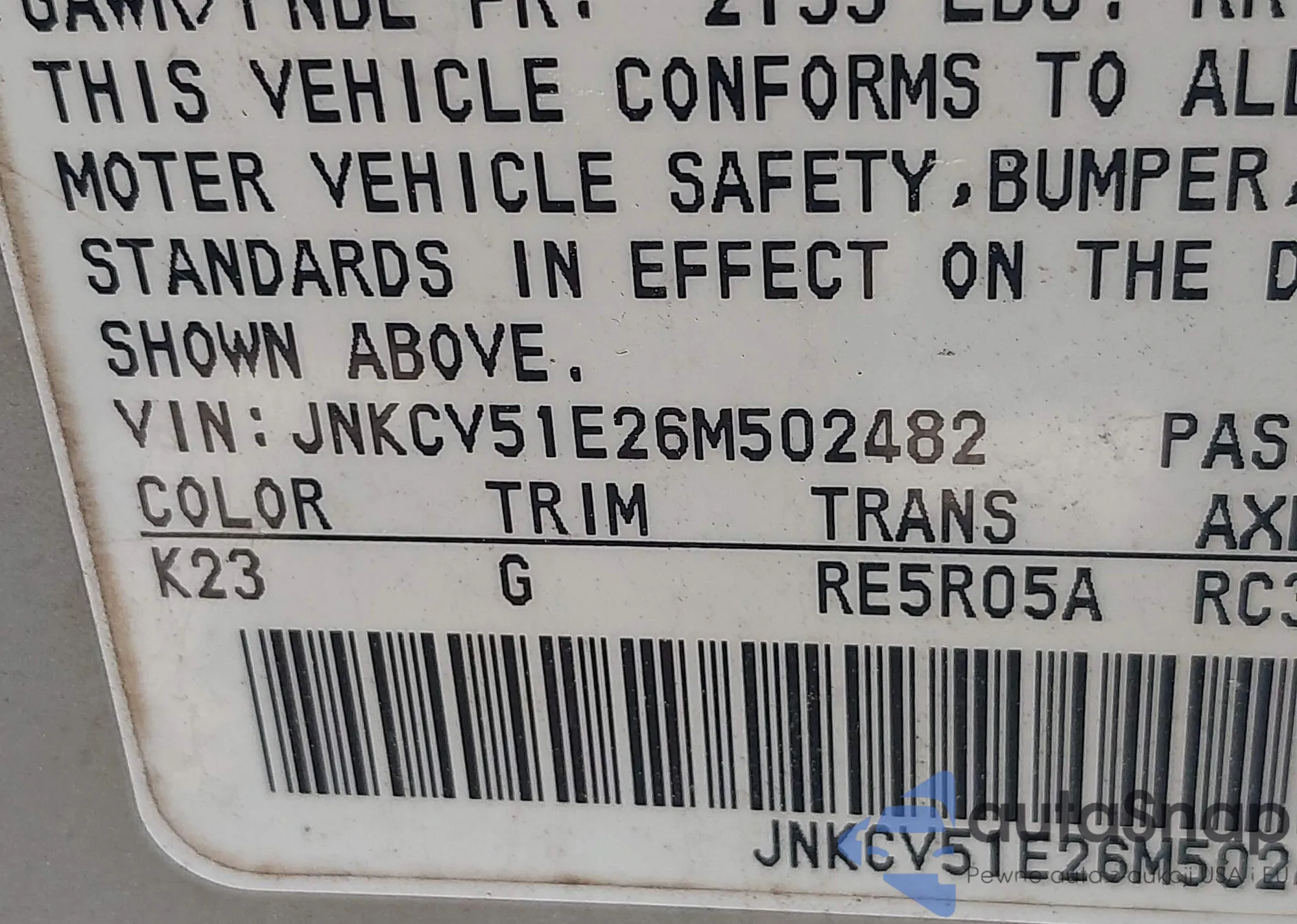 VIN: JNKCV51E26M502482