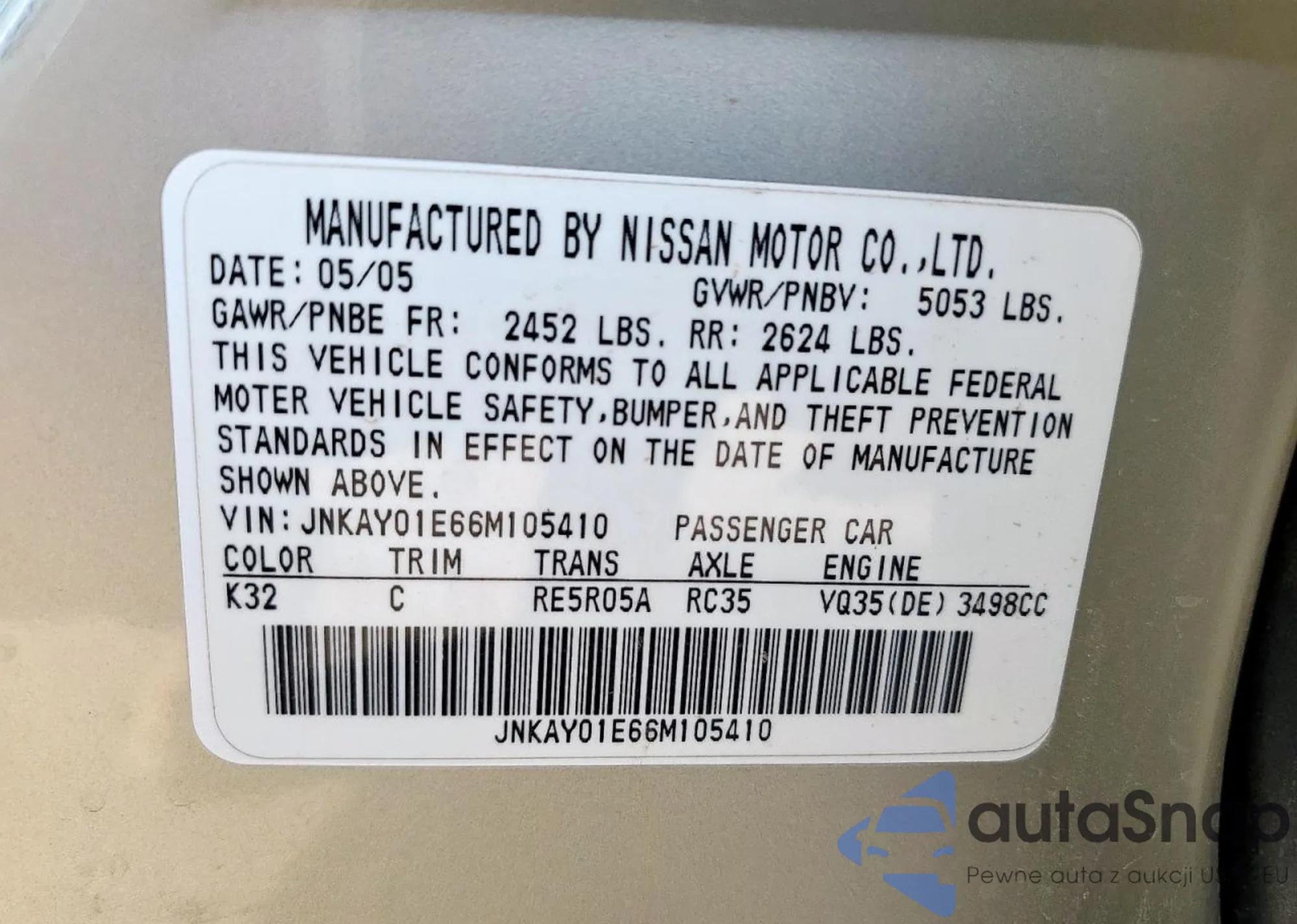 VIN: JNKAY01E66M105410