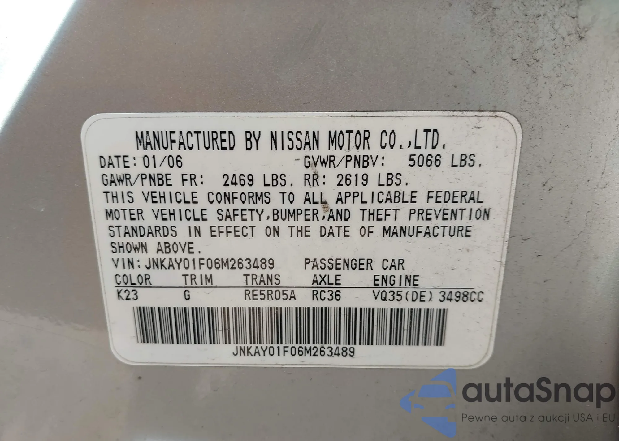 • VIN: JNKAY01F06M263489