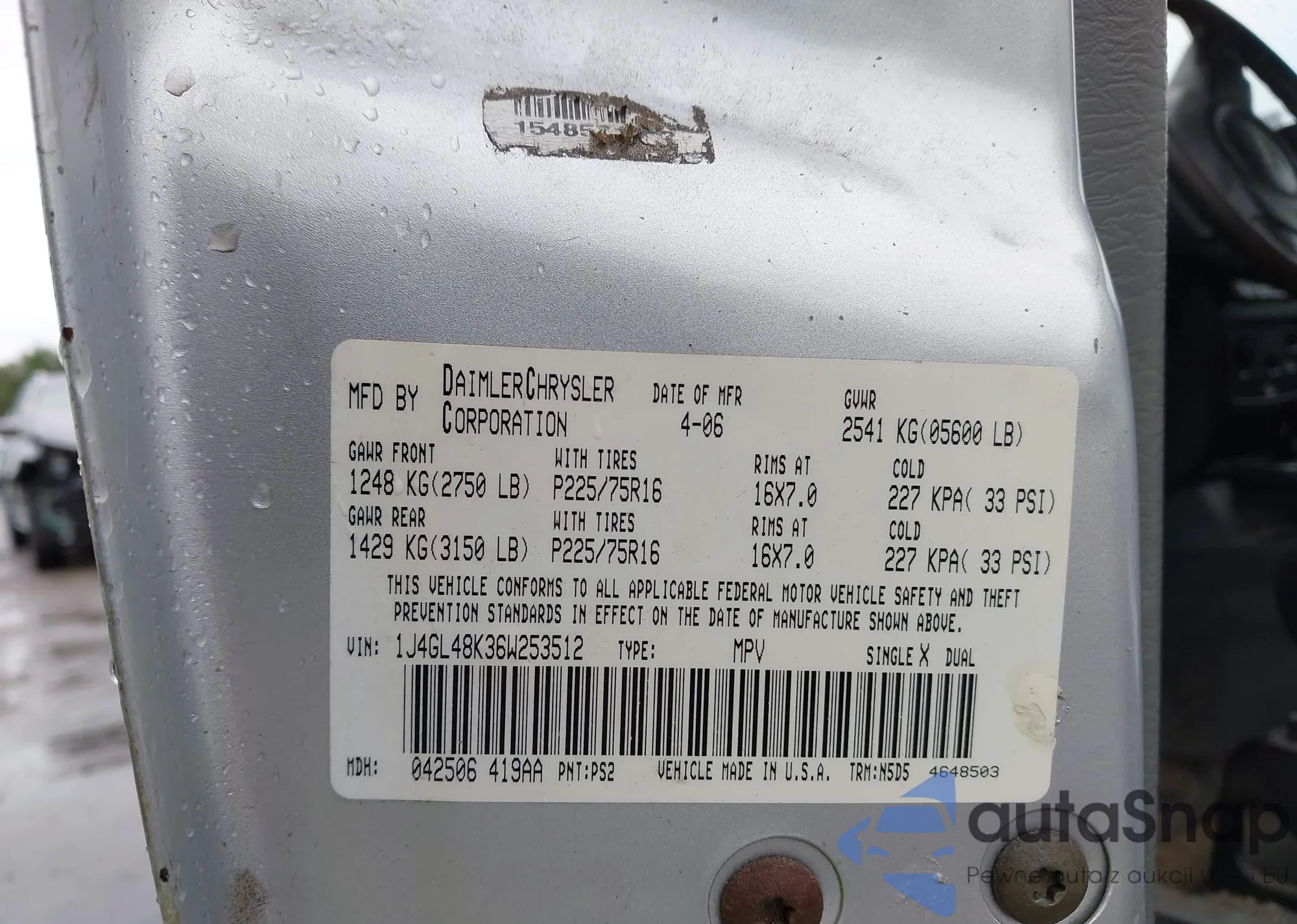 VIN: 1J4GL48K36W253512