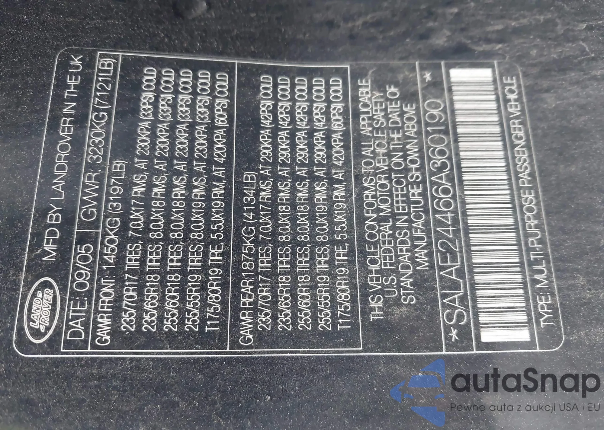 Автомобиль Land Rover LR3 2006 (VIN SALAE24466A360190) ранее не участвовал в торгах. Документы чистые, пробег соответствует или ниже среднего по рынку. Продаётся страховой компанией — рекомендуем покупку. Доставка в порт займет около 6–8 недель.