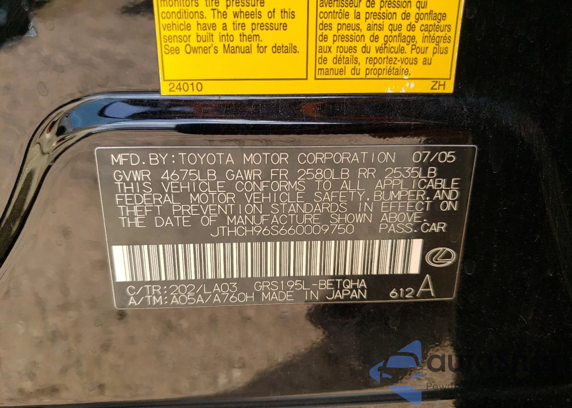 VIN: JTHCH96S660009750