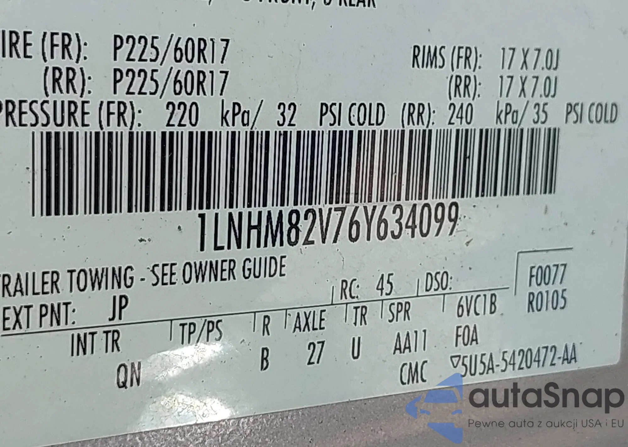 VIN: 1LNHM82V76Y634099