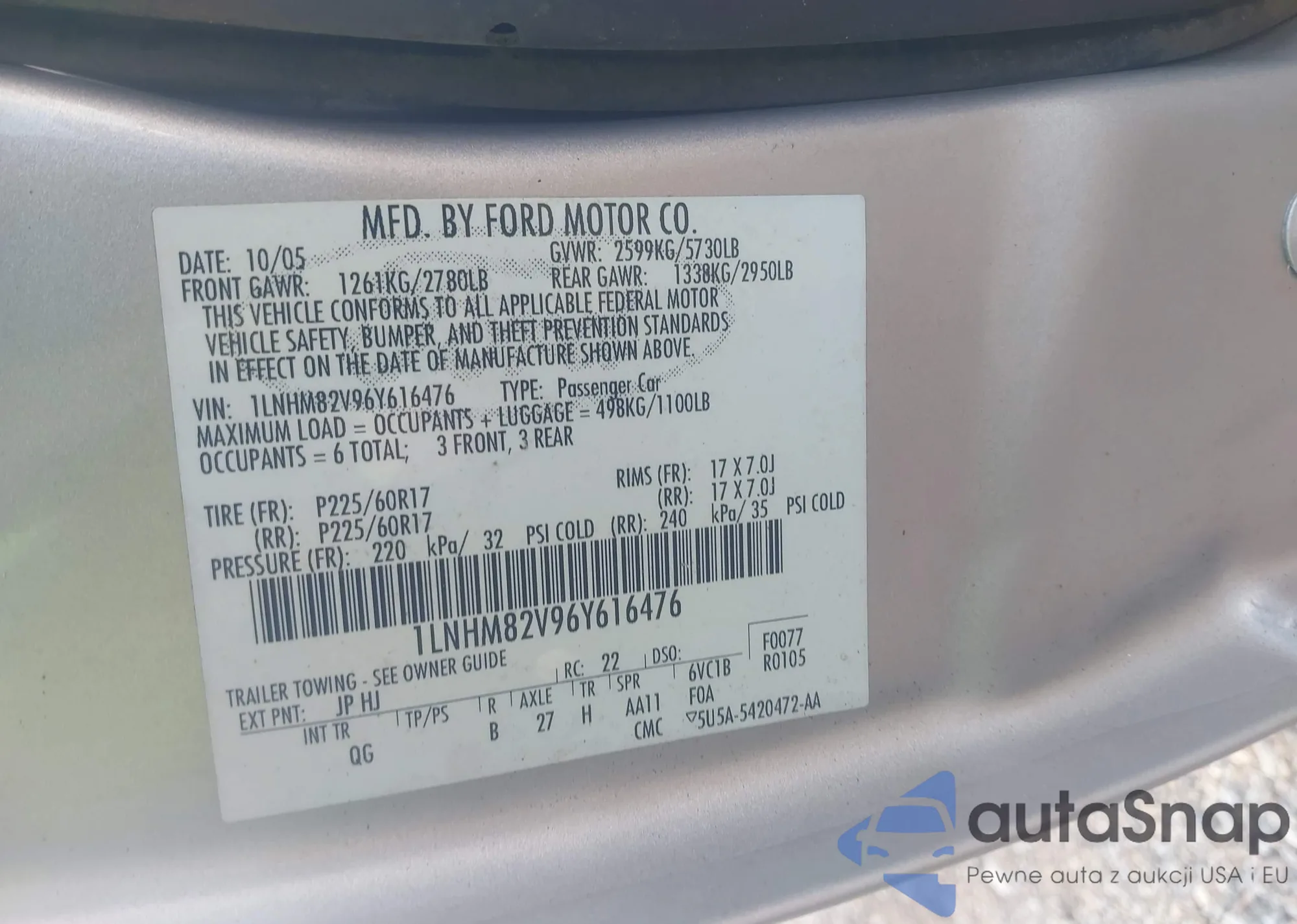 VIN: 1LNHM82V96Y616476