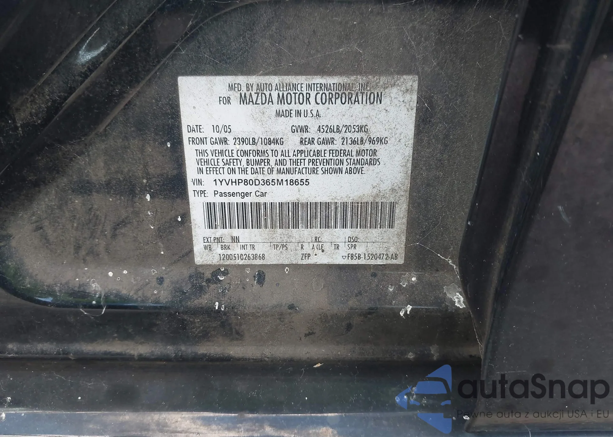 VIN: 1YVHP80D365M18655