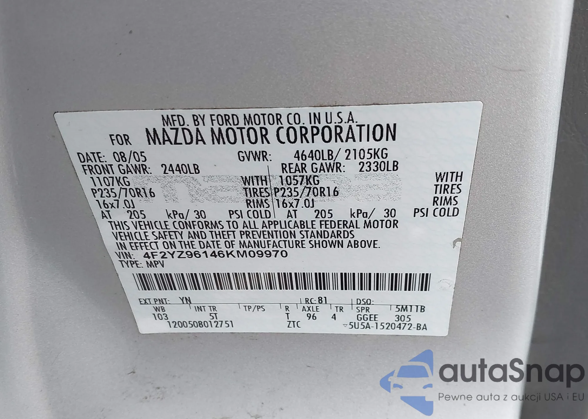 VIN: 4F2YZ96146KM09970