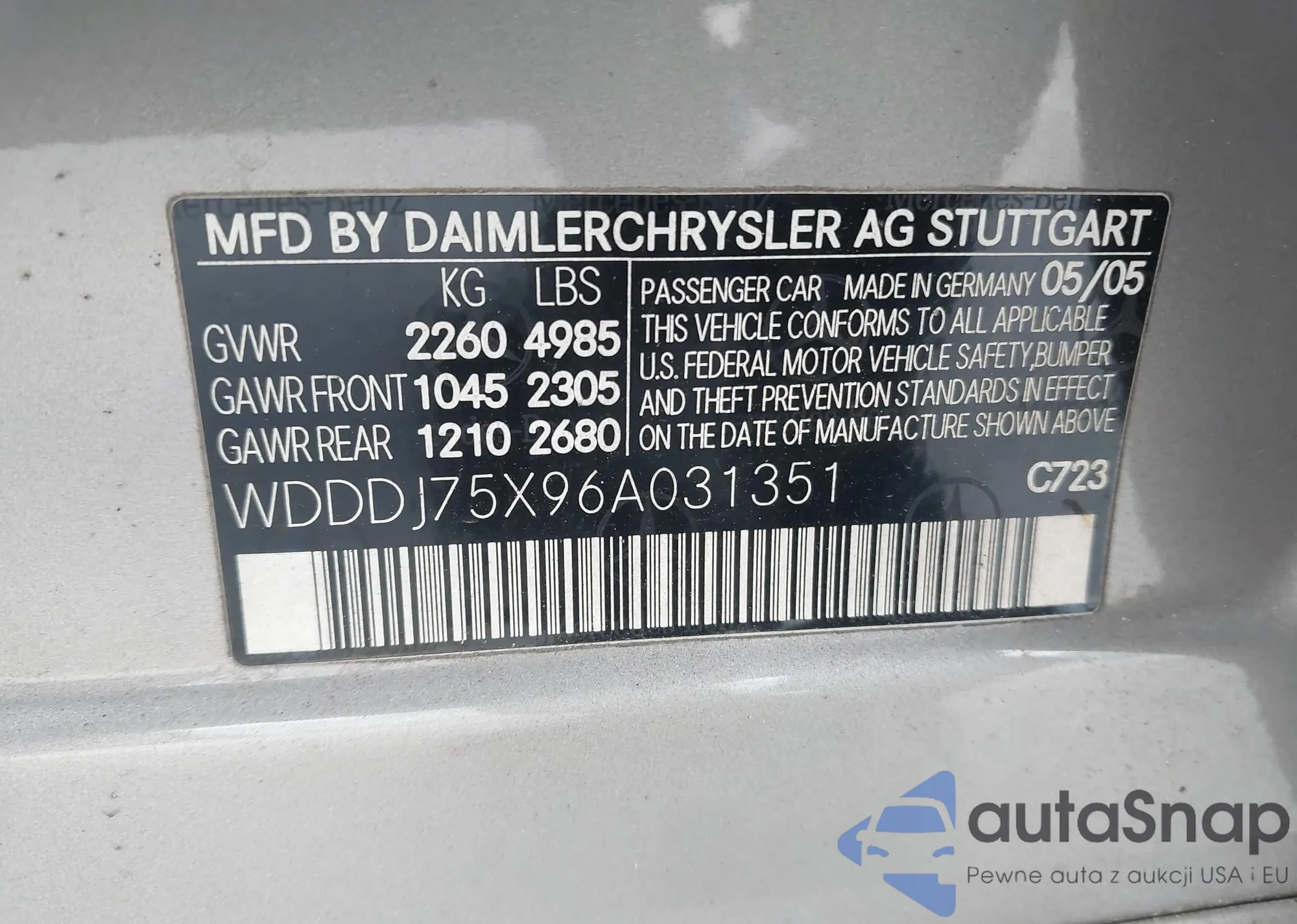 VIN: WDDDJ75X96A031351