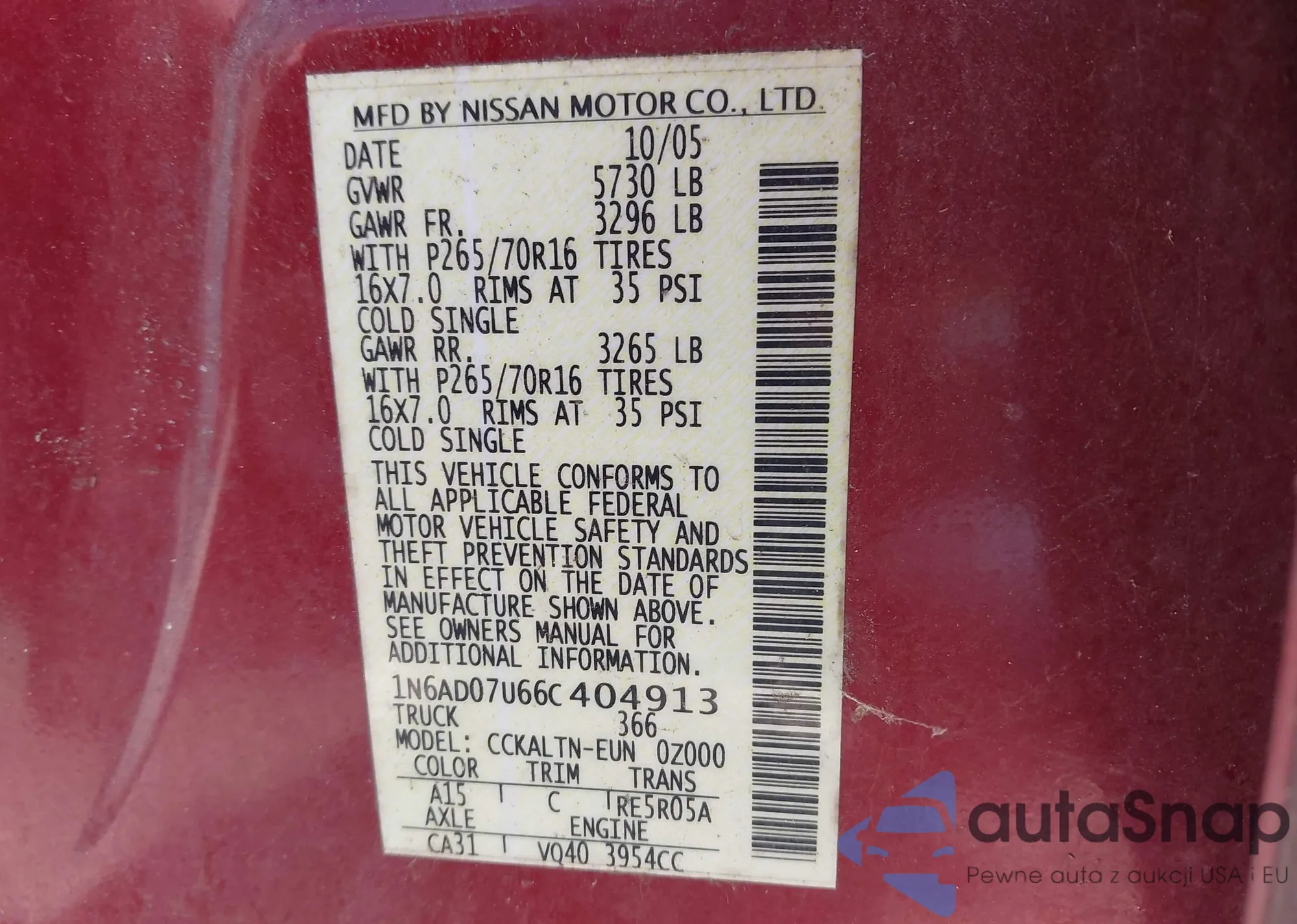 VIN: 1N6AD07U66C404913