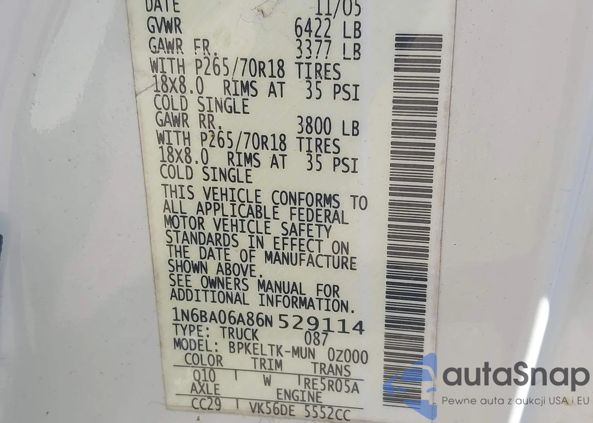 • VIN: 1N6BA06A86N529114